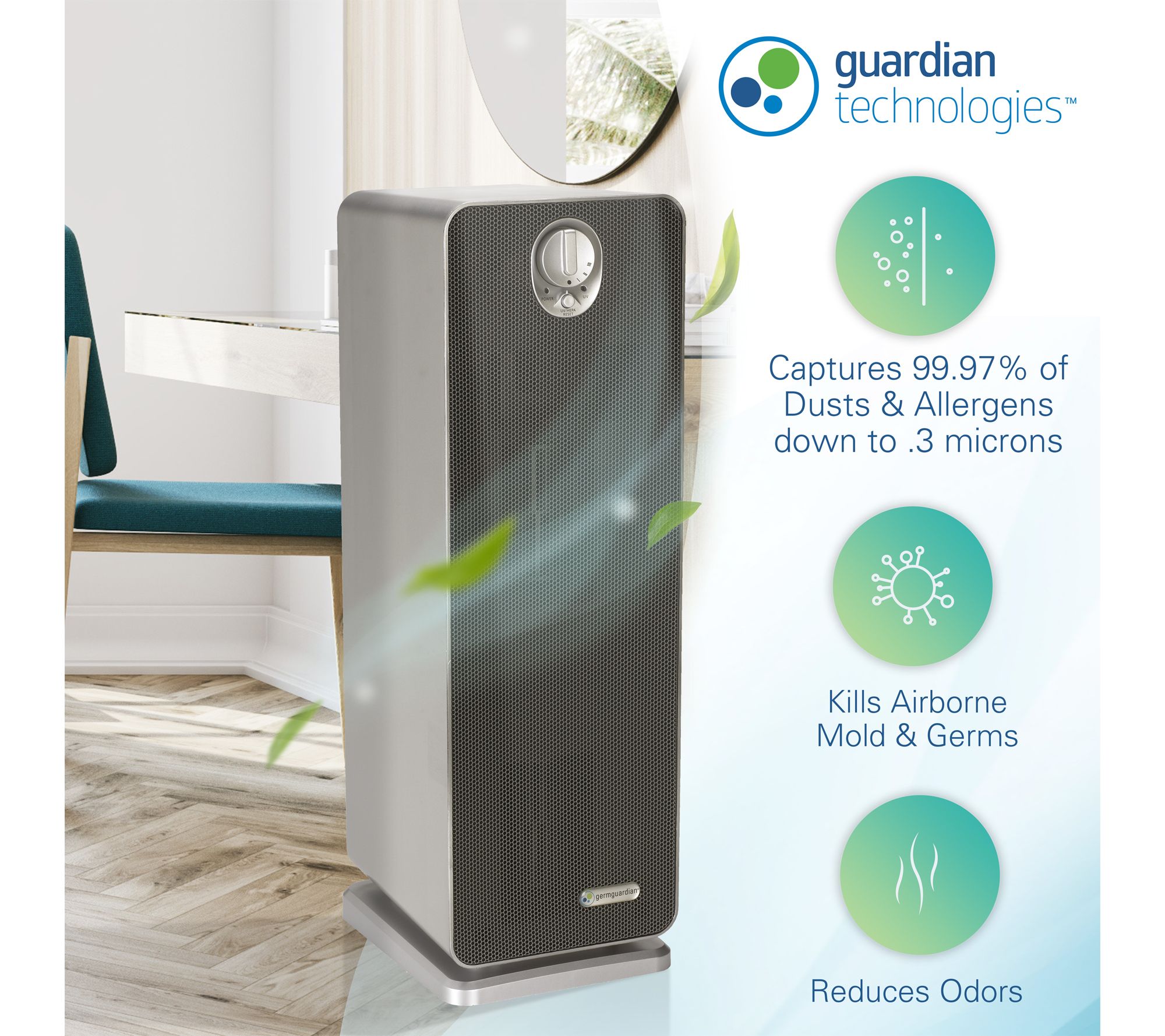 Take your air quality up a notch with the GermGuardian AC4900CA air purifier. It works to reduce allergens and odors, and its filter captures up to 99% of airborne particles. Three fan speeds provide ample operating options. From GermGuardian.