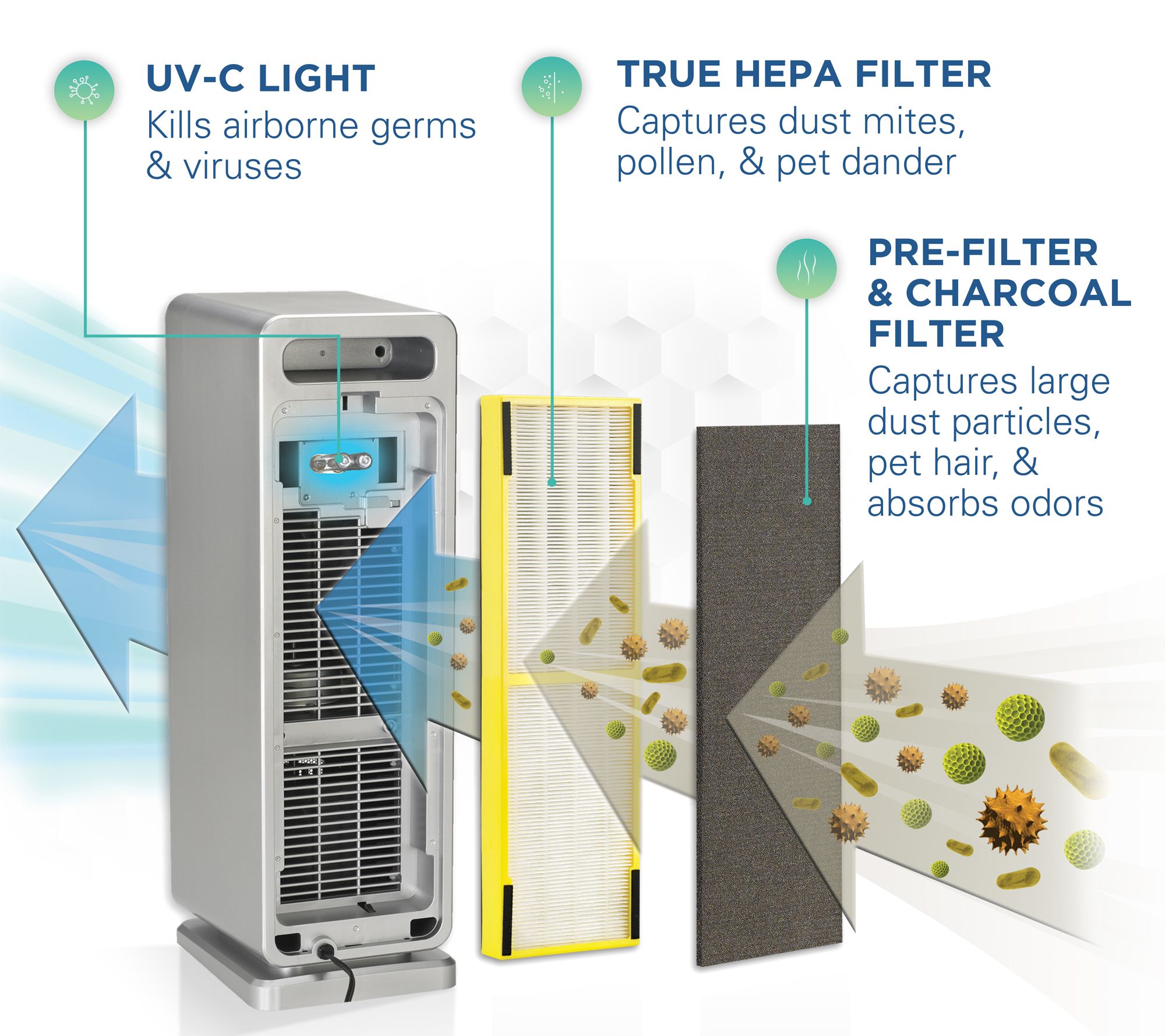 HEPA filter captures up to 99.97% of dust and allergens as small as 0.3 micron