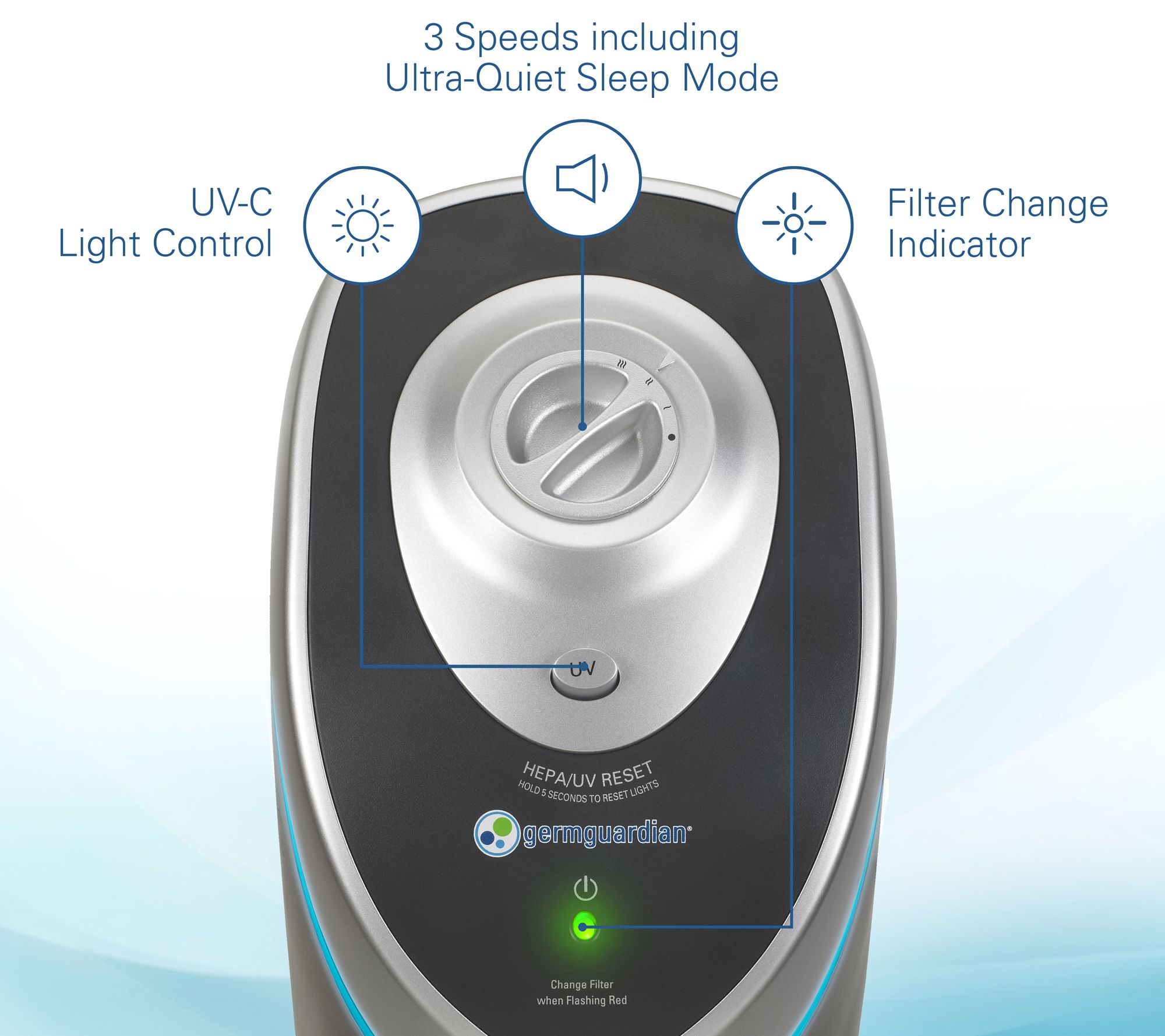 Take your air quality up a notch with the GermGuardian AC5000E air purifier. It works to reduce allergens and odors, and its filter captures up to 99% of airborne particles. Three fan speeds provide ample operating options. From GermGuardian.