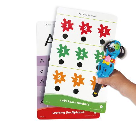 This self-checking electronic quiz card set harnesses the power of the talking Hot Dots Power Pen to help kids test their knowledge in 160 different lessons. Just touch the pen to a dot and it responds instantly with cool lights and phrases to notify of a right or wrong answer. The lesson cards feature early learning skills in five progressive categories, including colors, patterns, shapes, numbers, letters, and more. From EI.