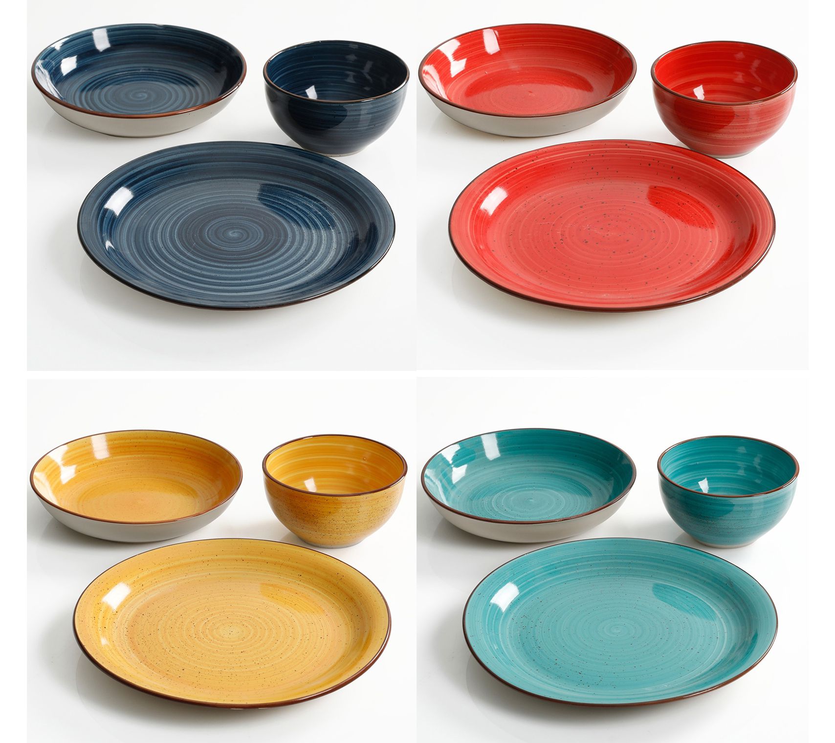 • Includes four 10.5" dinner plates, four 8.25" salad bowls, and four 5.25" cereal bowls