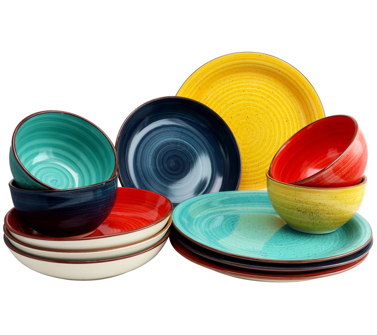 Gibson Color Speckle 12 Piece Double Bowl Dinnerware Set