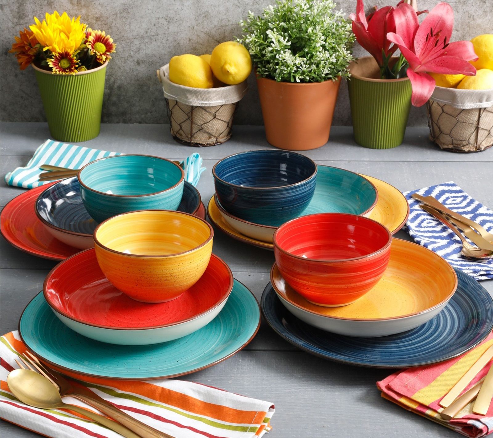 Display your culinary creations on this colorful dinnerware set. From Gibson Home.