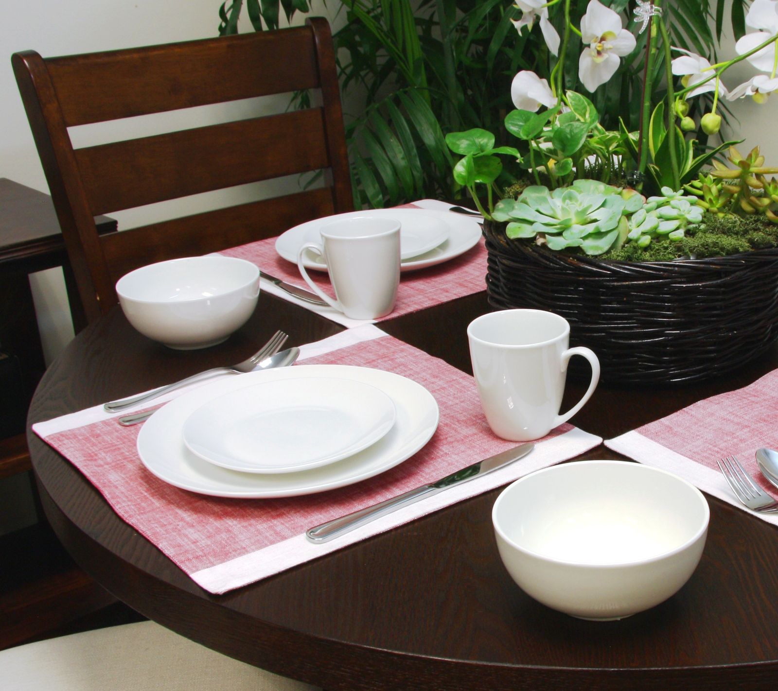 • Includes four 10.25" dinner plates, four 7.25" salad plates, four 6" bowls, and four 12.5-oz mugs