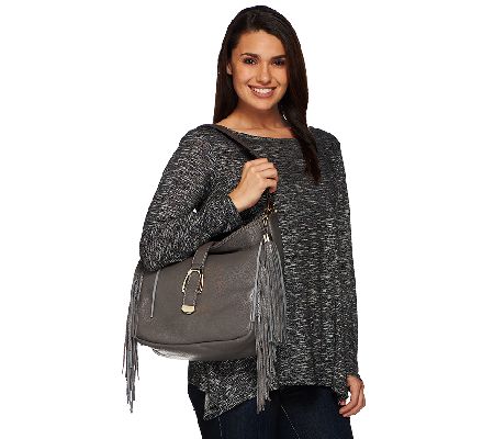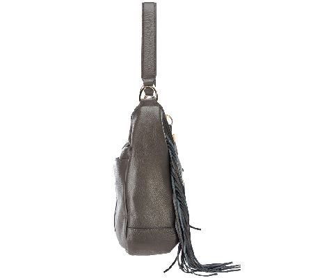 Based on a best-selling silhouette, this slouchy hobo gets a fashion-forward update with cascading fringe on either side, plus goldtone hardware throughout. The coordinating stirrup with hidden magnetic closure allows for easy access to all your essentials. Plus, it's outfitted with a single handle, which can be draped across your arm or flung over the shoulder for an effortlessly cool and carefree appearance. Offered in a variety of colors, this well-appointed handbag combines the sophistication you love with the thrill of the unexpected.
