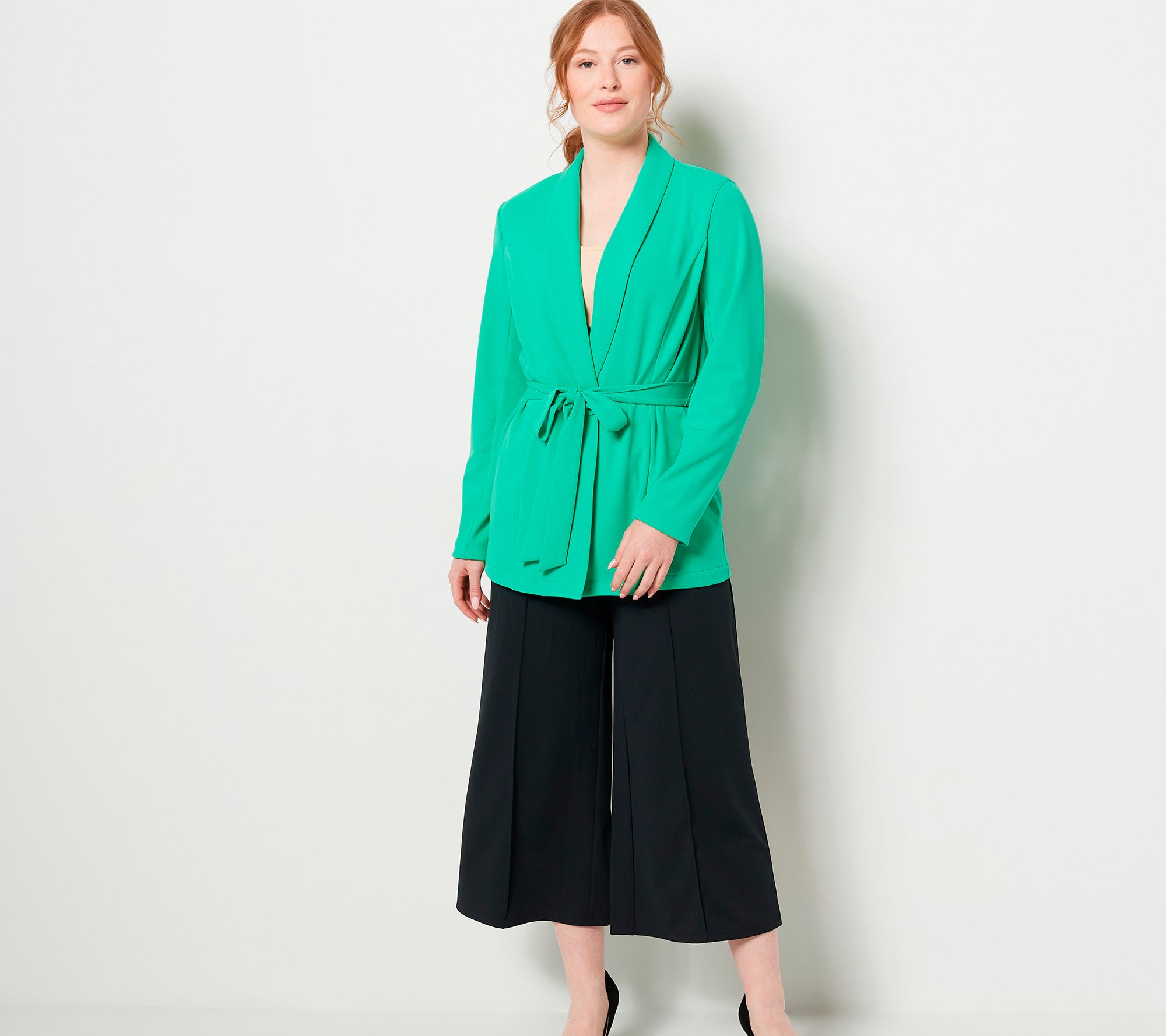 Summer style magic: it's what happens when you pair the season's tanks, tees, and dresses -- or an al fresco evening -- with this beautifully fit bi-stretch crepe blazer. From Girl With Curves.