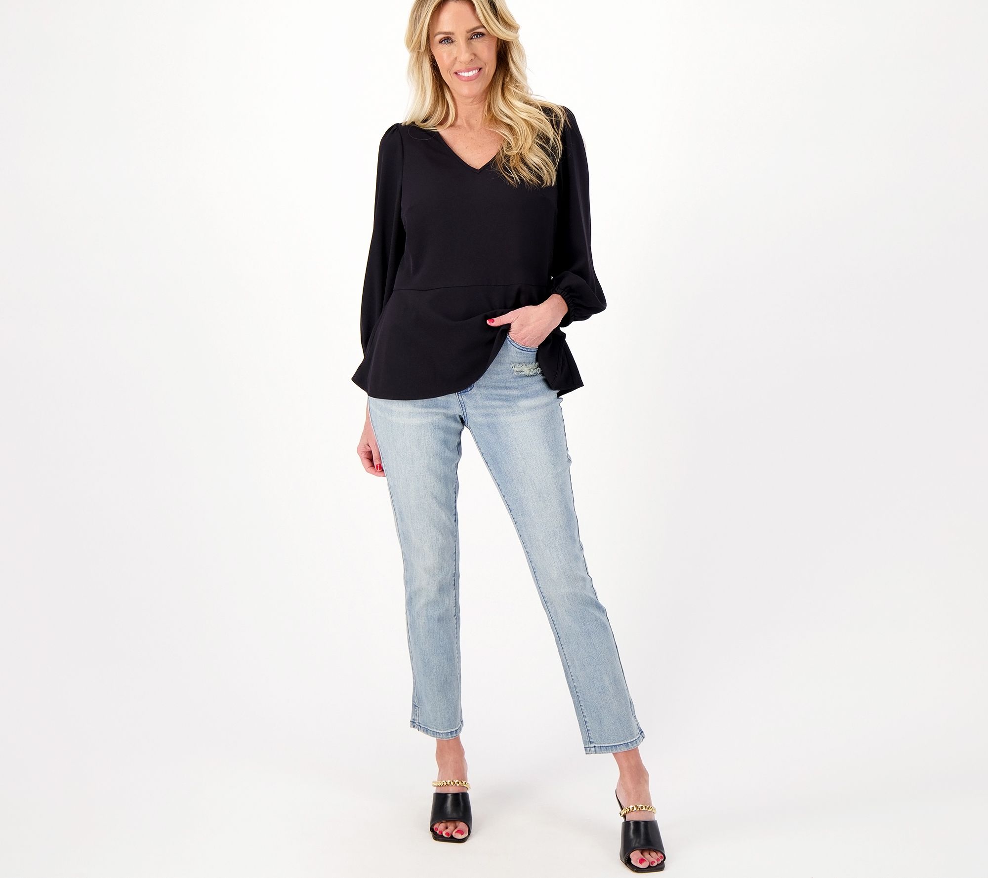 The sun's out -- and ankles are too! Slip into your cutest sandals, brightly-hued espadrilles, or backless heels and head out for summer adventures in these footwear-friendly crop jeans (don't forget to don that shiny ankle bracelet!). From Girl With Curves.