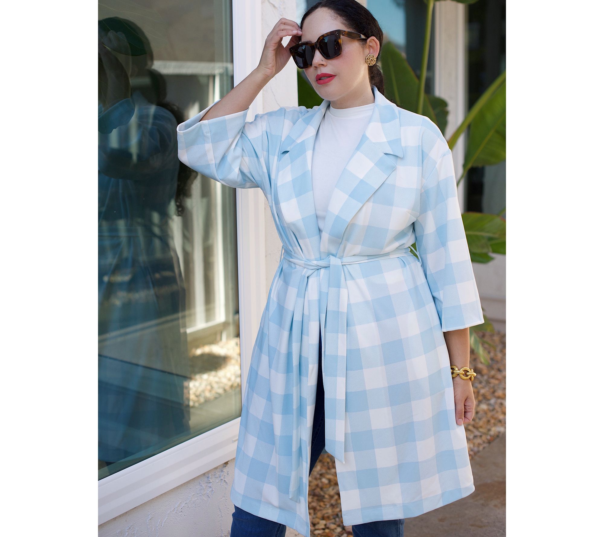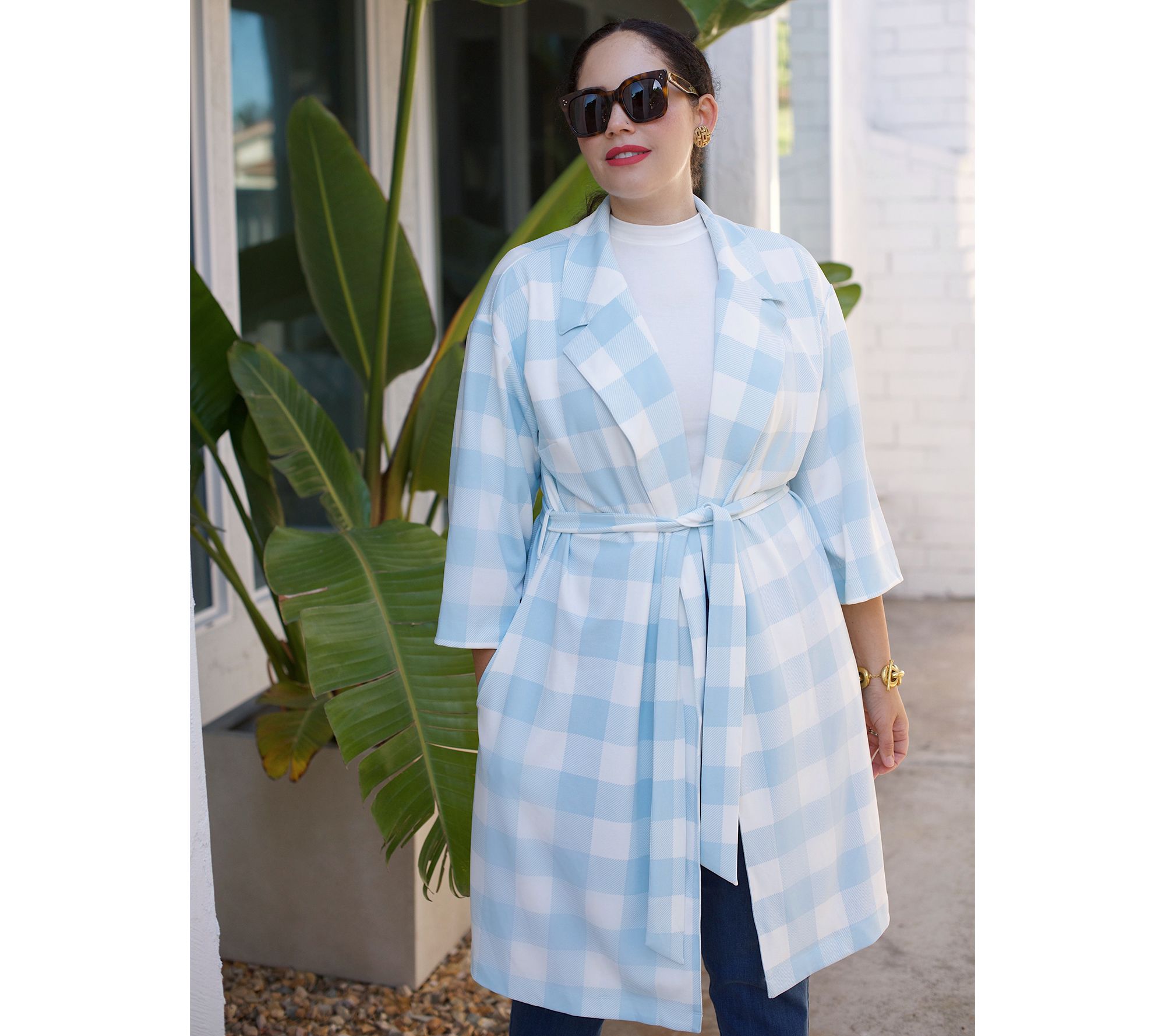 Girl With Curves Regular 3/4-Sleeve Wrap Coat with Tie Waist