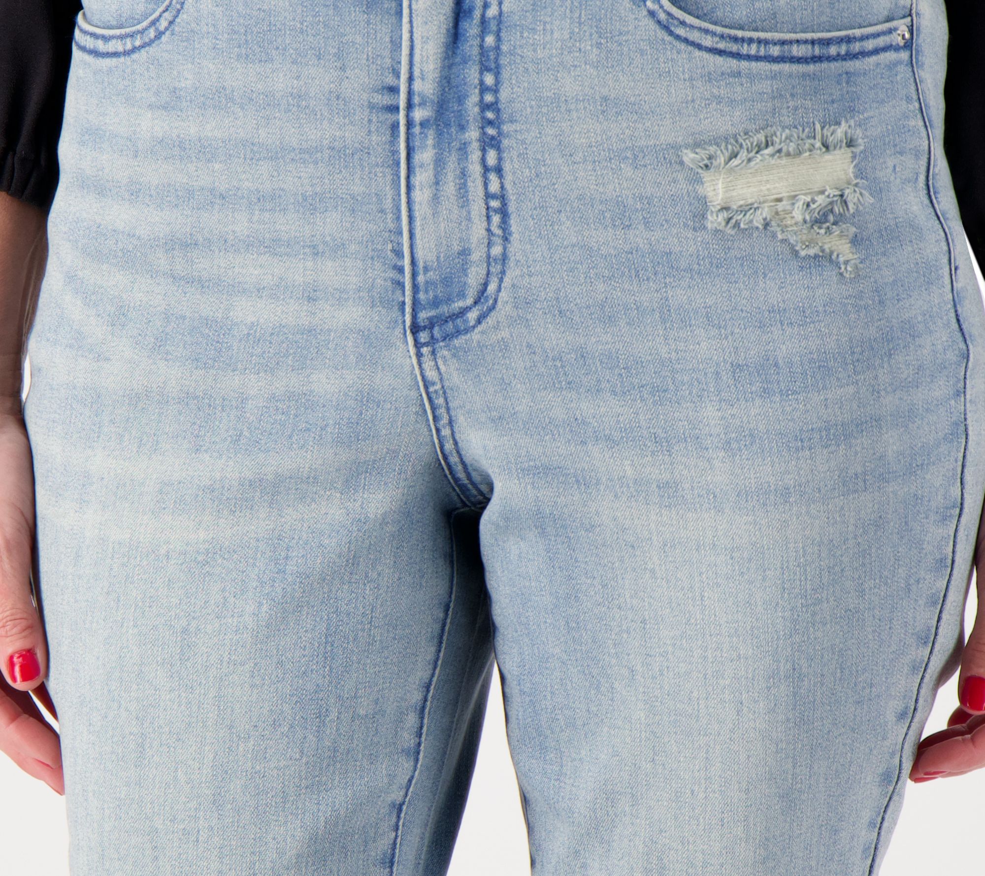 The sun's out -- and ankles are too! Slip into your cutest sandals, brightly-hued espadrilles, or backless heels and head out for summer adventures in these footwear-friendly crop jeans (don't forget to don that shiny ankle bracelet!). From Girl With Curves.