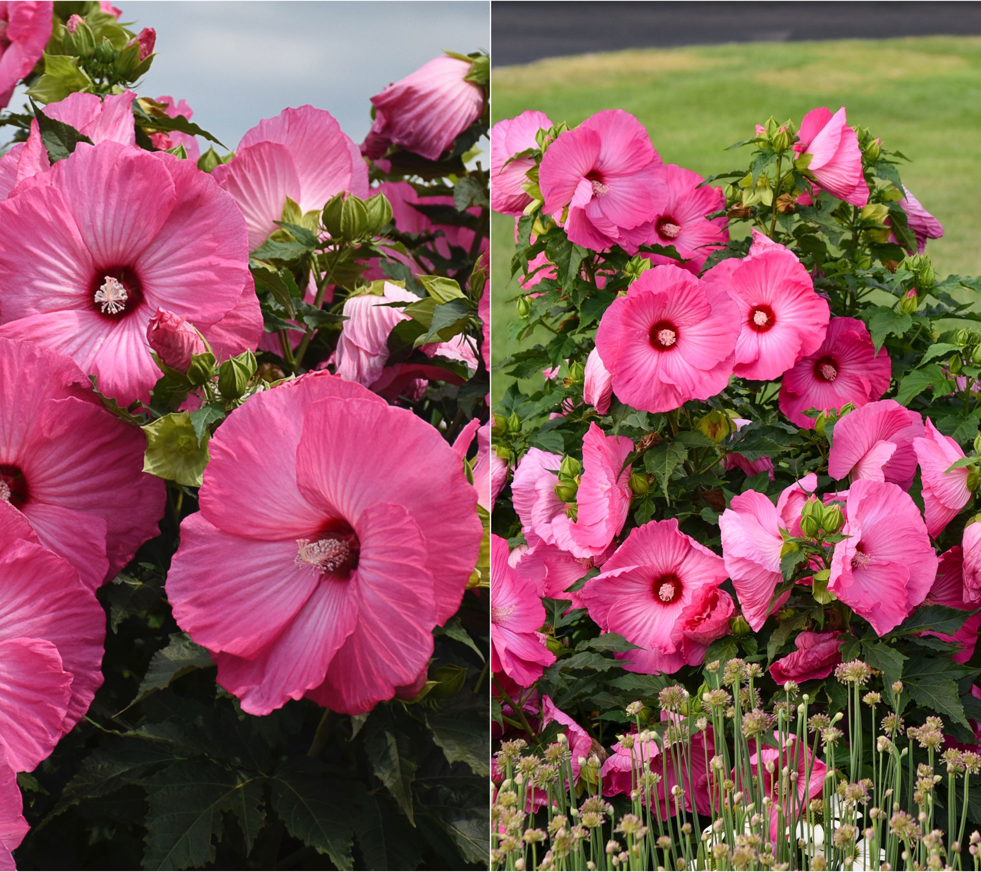 Give your garden a burst of mid-summer to autumn color with the Airbrush Effect hardy hibiscus shrub, featuring lush pink blooms with a striking white center and bold, dark green foliage. This easy-to-grow perennial stays compact and thrives with little maintenance, offering reliable beauty year after year. From Girl Next Door.