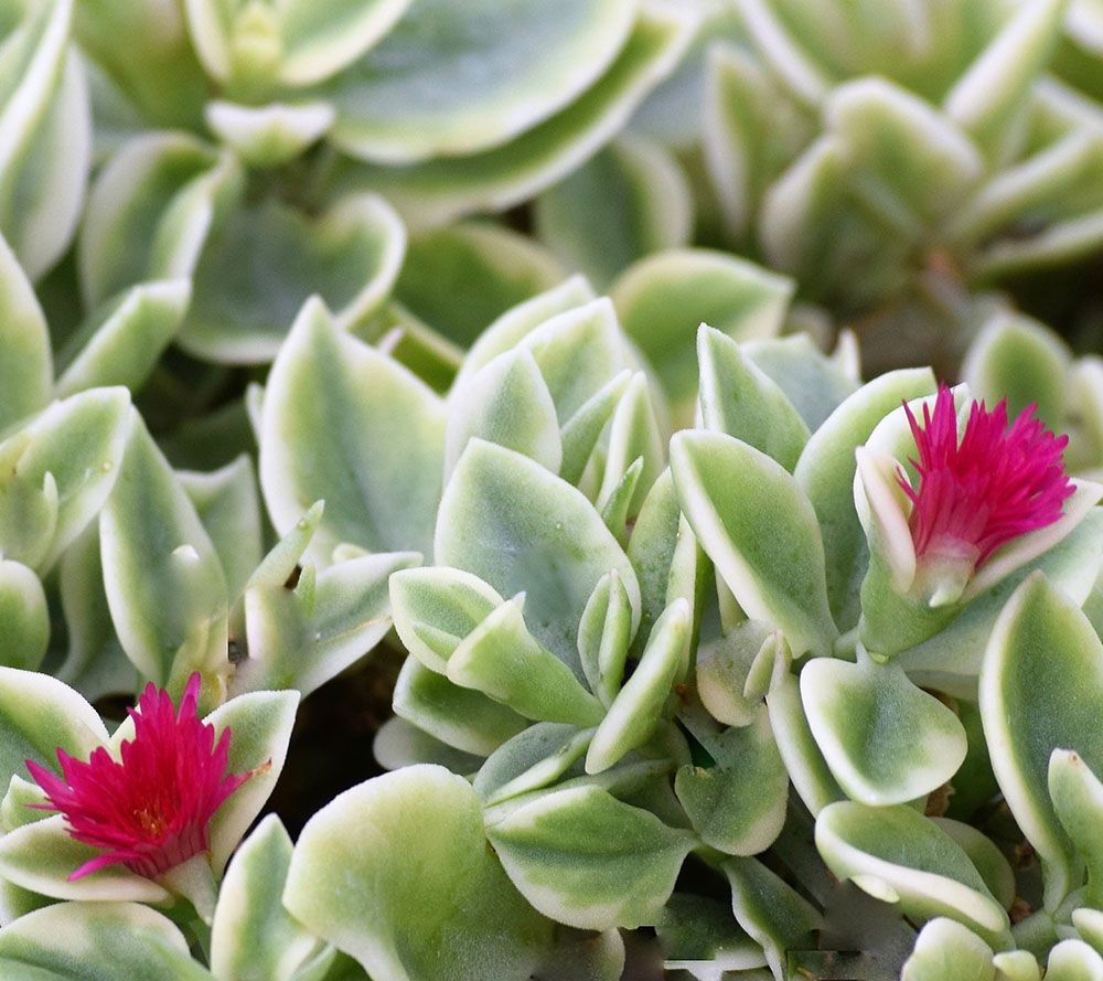 Add a splash of lush green to your garden or indoor space with these Girl Next Door Mezoo trailing succulents. Their jade green leaves with golden yellow edges provide stunning contrast, while their bright red blooms sparkle like gemstones in spring and summer. Ideal for mixed containers, hanging planters, or patio displays, these drought-tolerant plants make for a wonderful houseplant companion during cooler weather. From Roberta's.