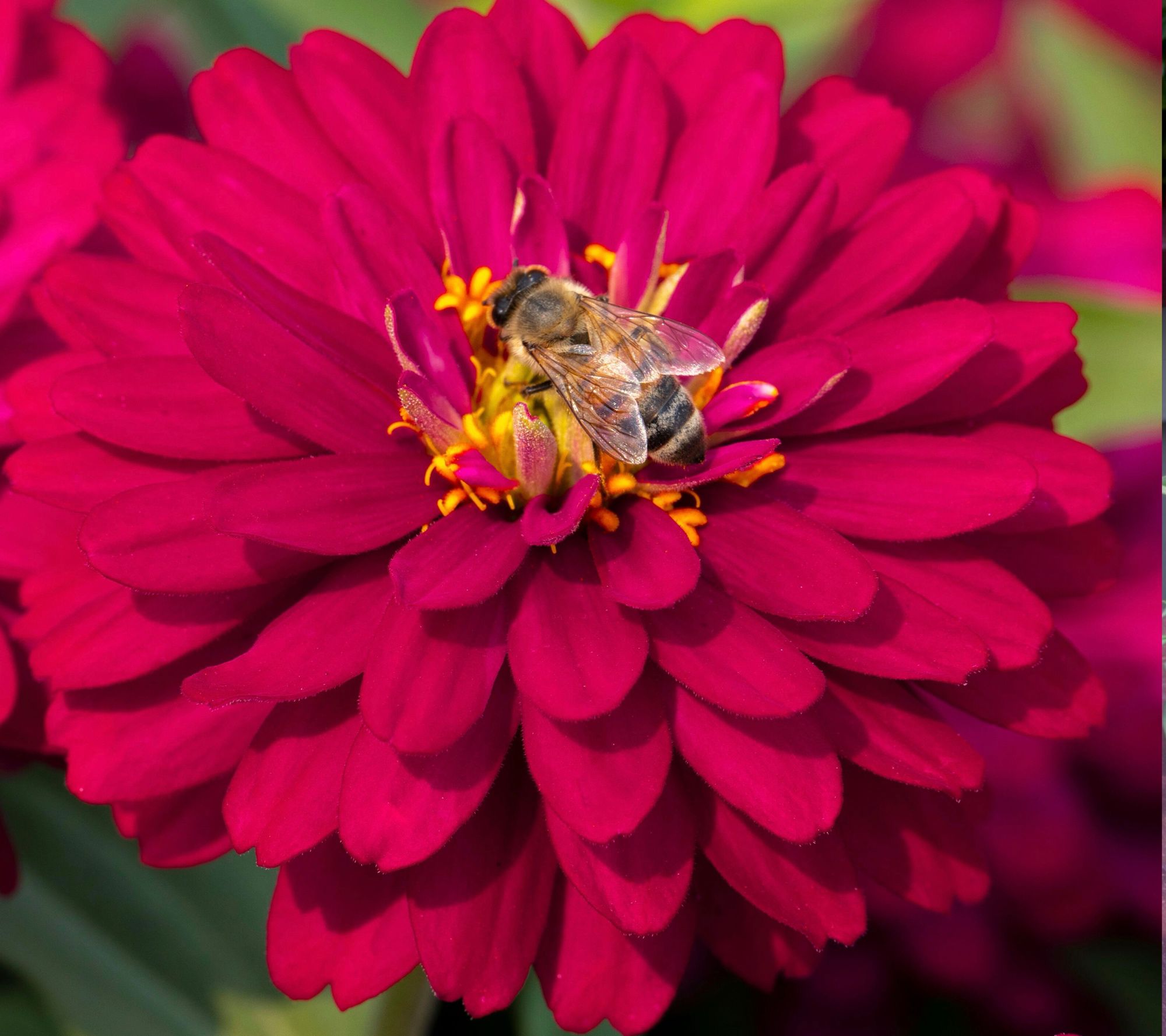 Delight in a lively burst of color all season long with this vibrant zinnia elegant mix. These low, dense plants add dramatic flair to gardens or containers, with large double blooms in captivating shades of hot orange, magenta, deep red, and pink. A pollinator favorite (that's deer-resistant, too), their fast-growing lushness brings joy to your yard or veggie patch. From Girl Next Door by Carolyn Gracie.