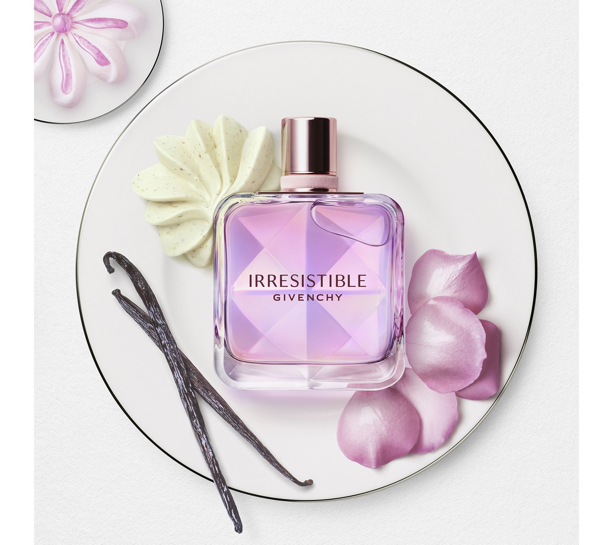 Inspired by a Parisian haute patisserie, Givenchy's Irresistible Nectar Eau de Parfum is a gourmand floral fragrance with notes of rose, pistachio, and vanilla. Givenchy partnered with chef Francois Daubinet to blend the art of perfumery and pastry into an irresistible floral delicacy. It features top notes of neroli, middle notes of rose, and bottom notes of pistachio, vanilla, and woody accord.