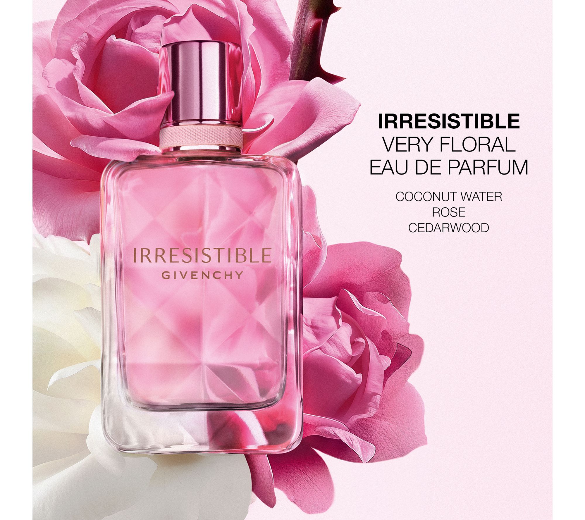 Plus enjoy a sample of Irresistible Very Floral, a captivating floral-woody solar fragrance with roses and delicate white flowers at its heart. The fragrance is intensified by the unexpected freshness of coconut water and the contrast of blackcurrant -- for magnified sophistication and empowered femininity that's impossible to resist.