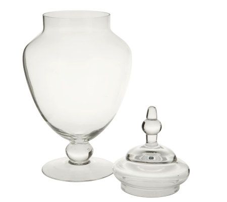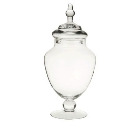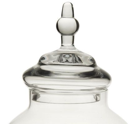 A canvas for your creativity. Crafted of clear glass and finished with a decorative lid, this beautiful pear-shaped apothecary jar can be filled with potpourri, beaded fruit, wrapped candies, ornaments, faux flowers or fruit--whatever suits your personal decor. From the Valerie Parr Hill Collection.