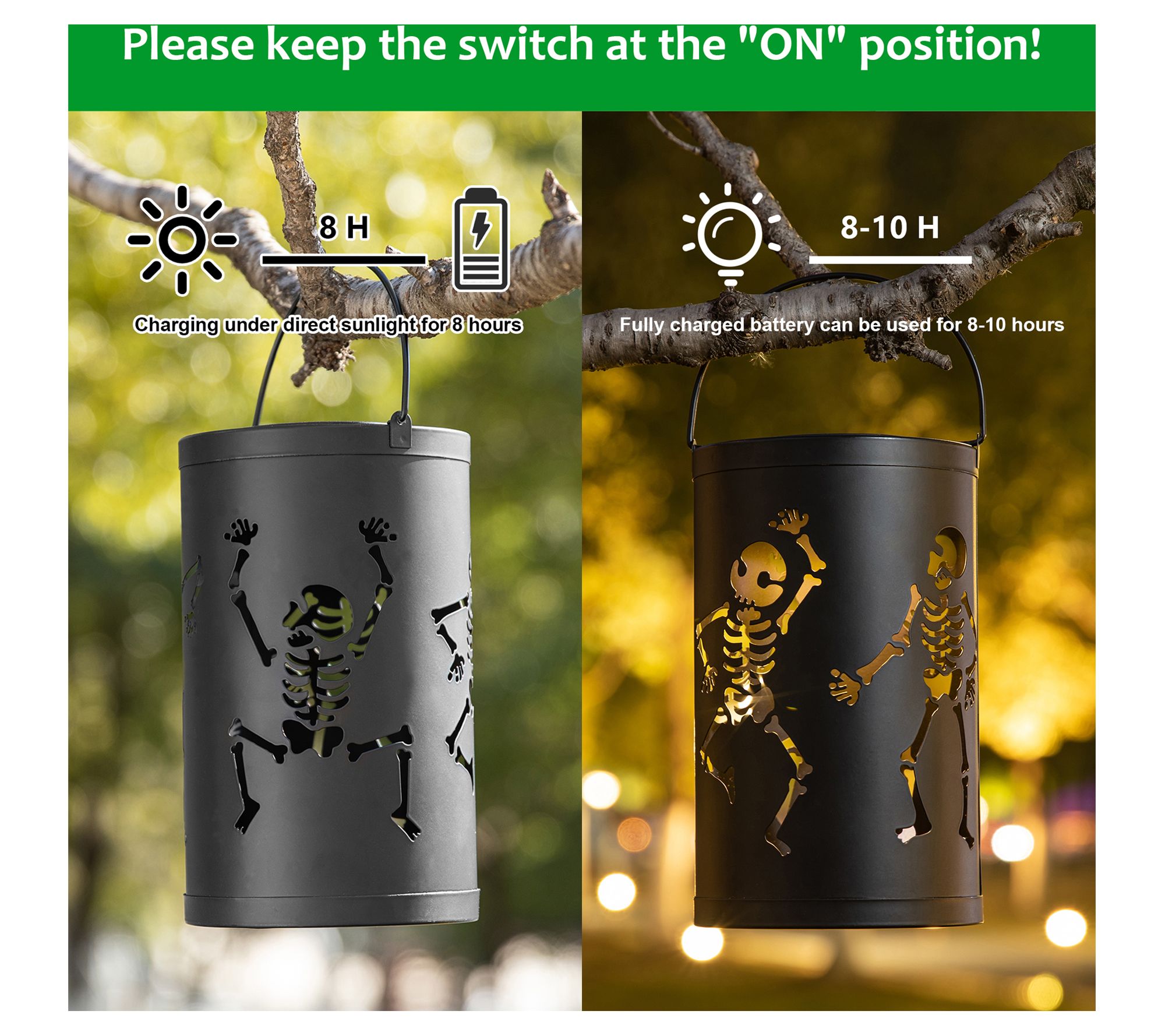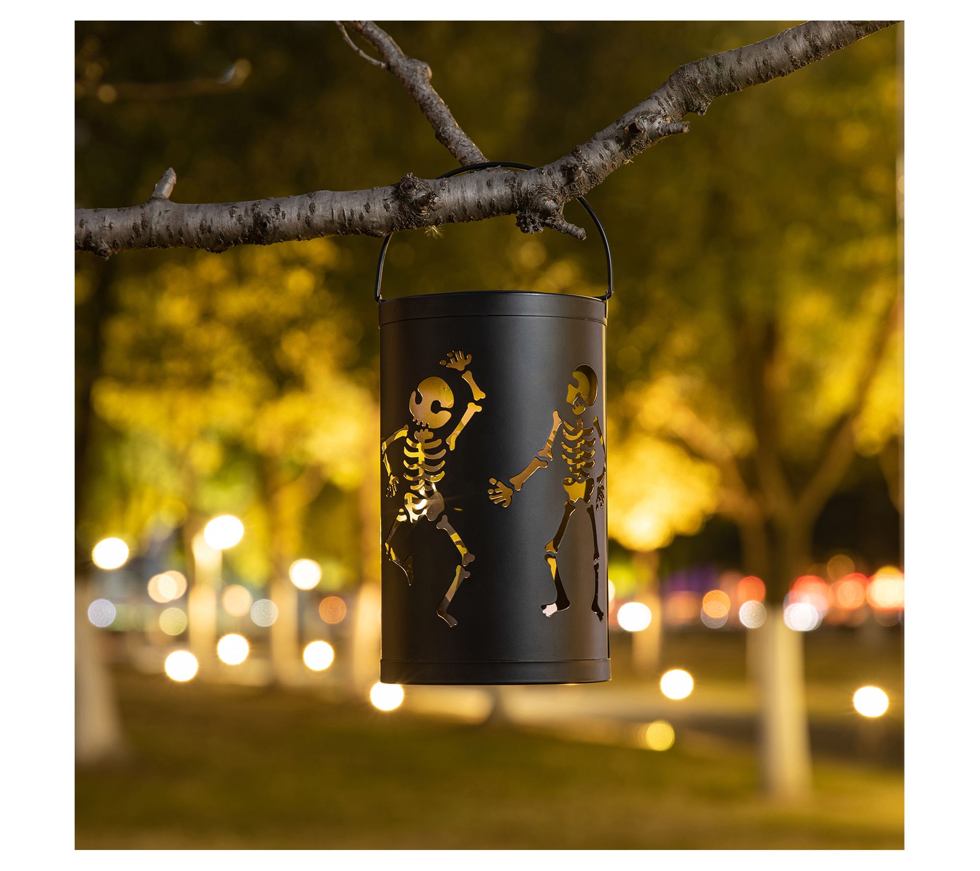 Glitzhome 10.75"H Halloween Skeleton Solar Powered LED Lantern
