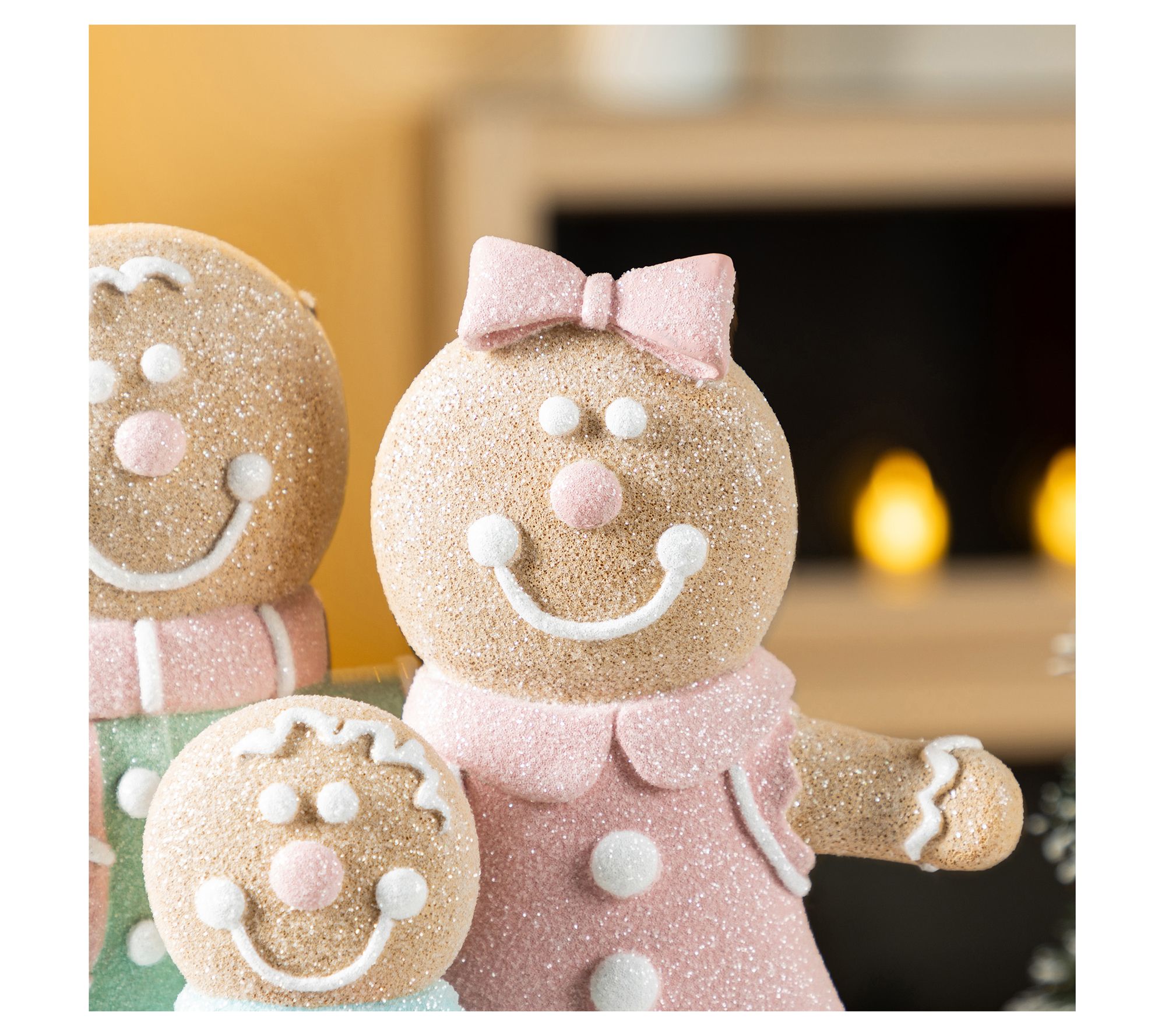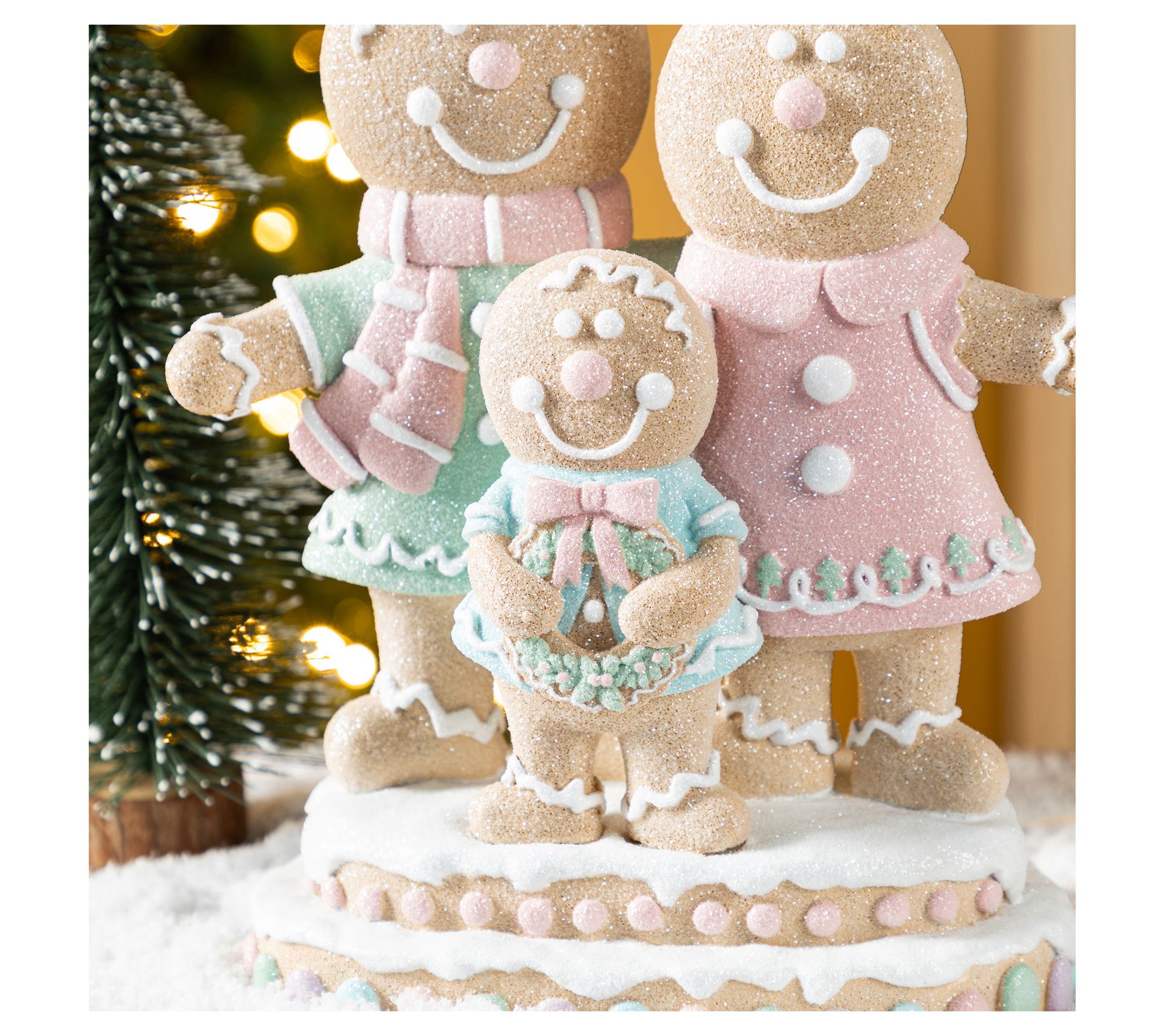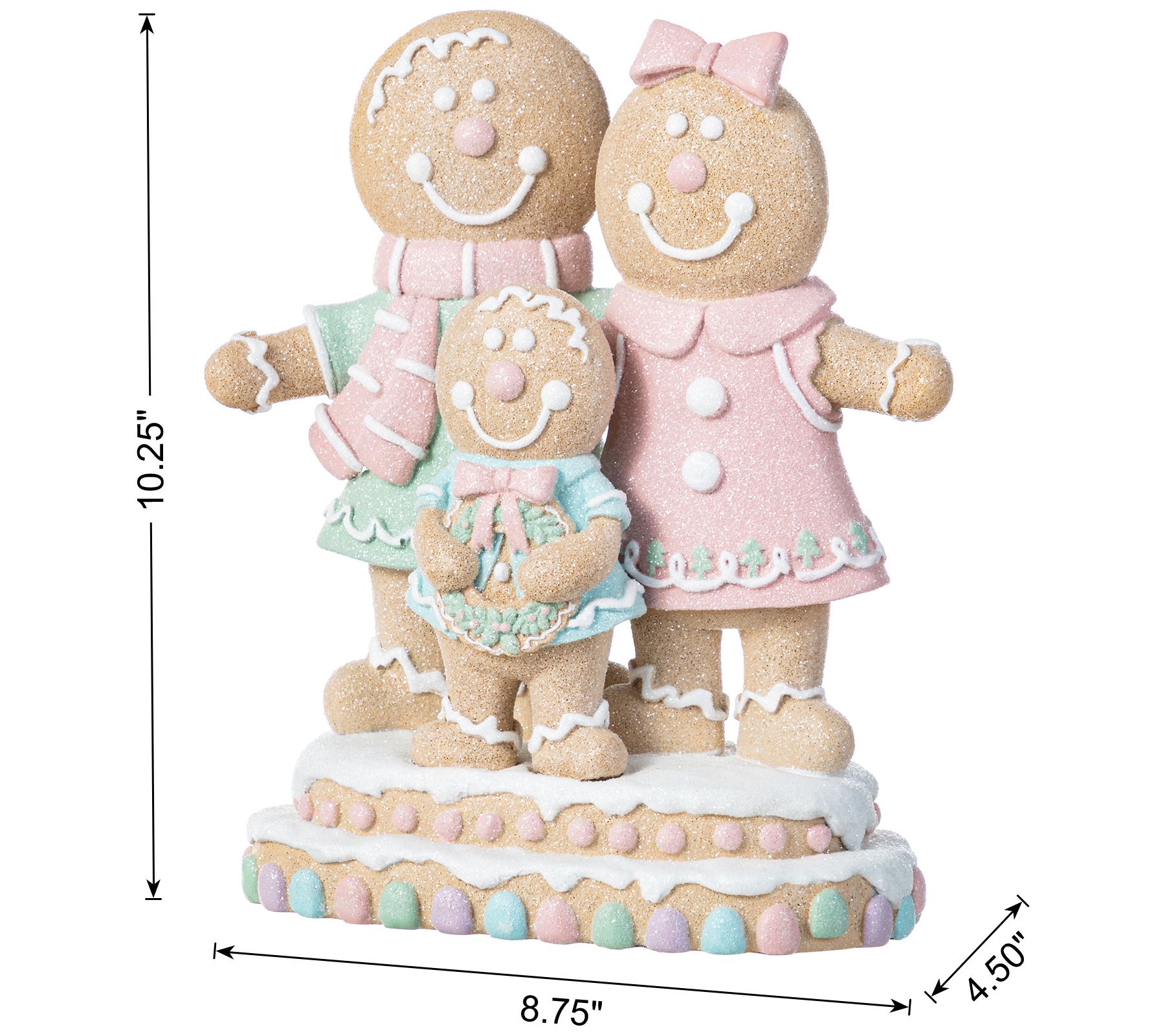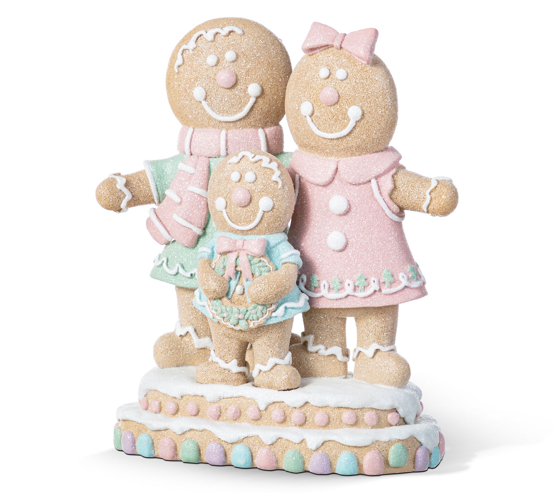 Bring a little holiday magic to your home with this charming Christmas display. Crafted from durable resin, this delightful gingerbread family features a mother, father, and child, all adorned with pastel-colored icing that makes them look good enough to eat. Perfect for complimenting your festive centerpiece, it's an eye-catching addition that warms any room and adds a touch of whimsy to your seasonal decor. Ideal for your table or shelf, it effortlessly combines sweetness and cheer. From Glitzhome.