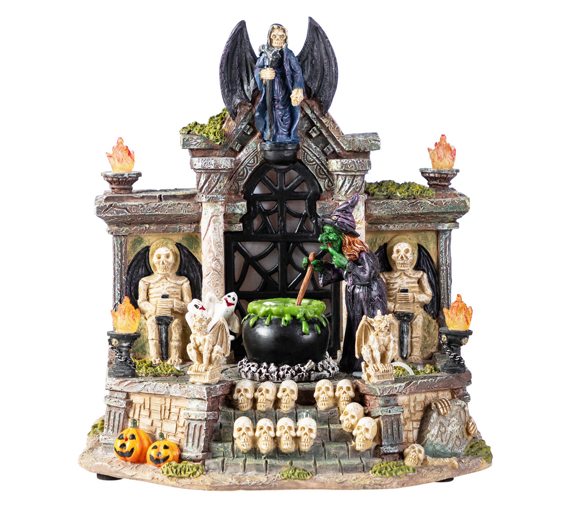 Glitzhome 10"H Lighted Resin Halloween HauntedHouse Village