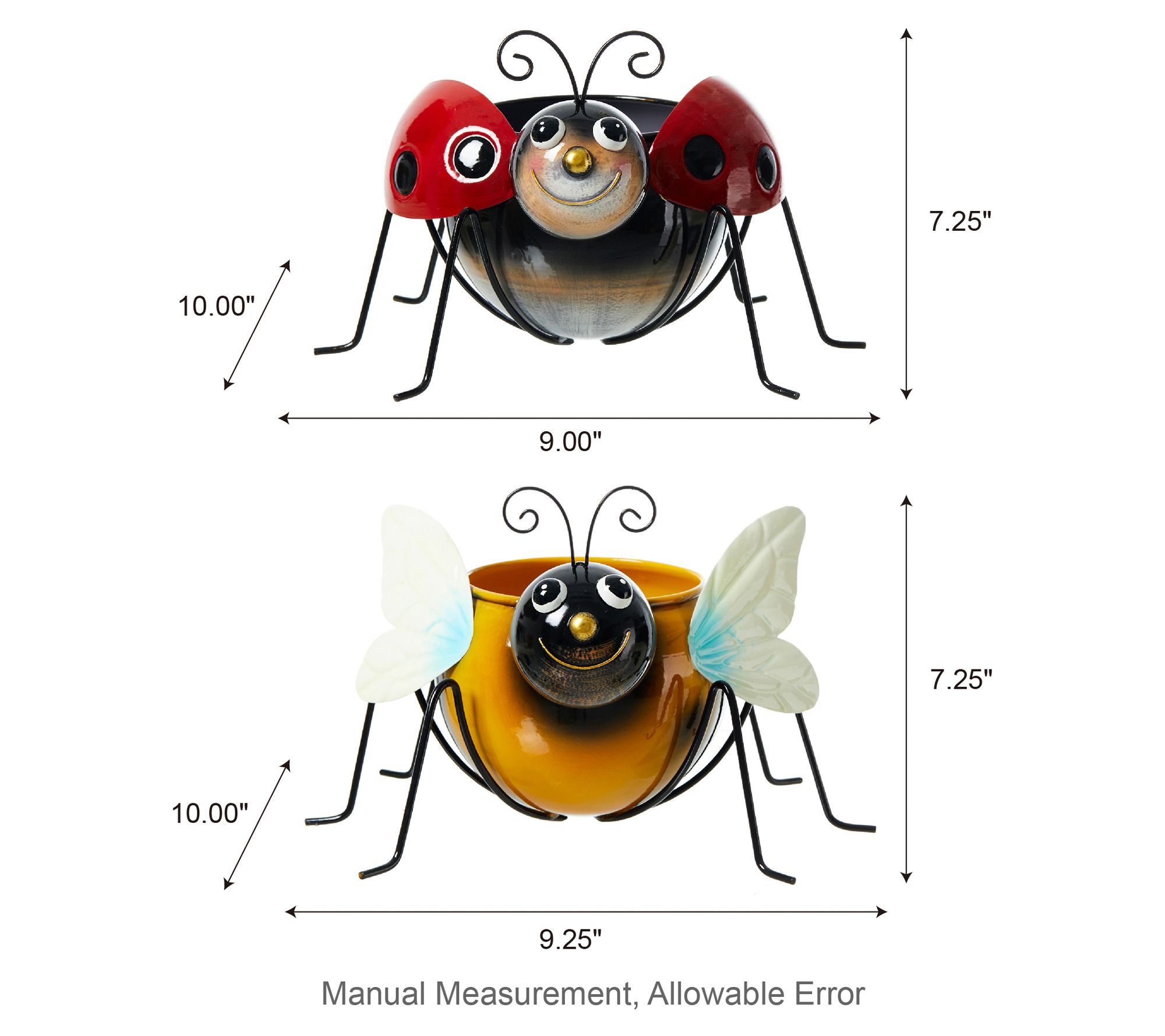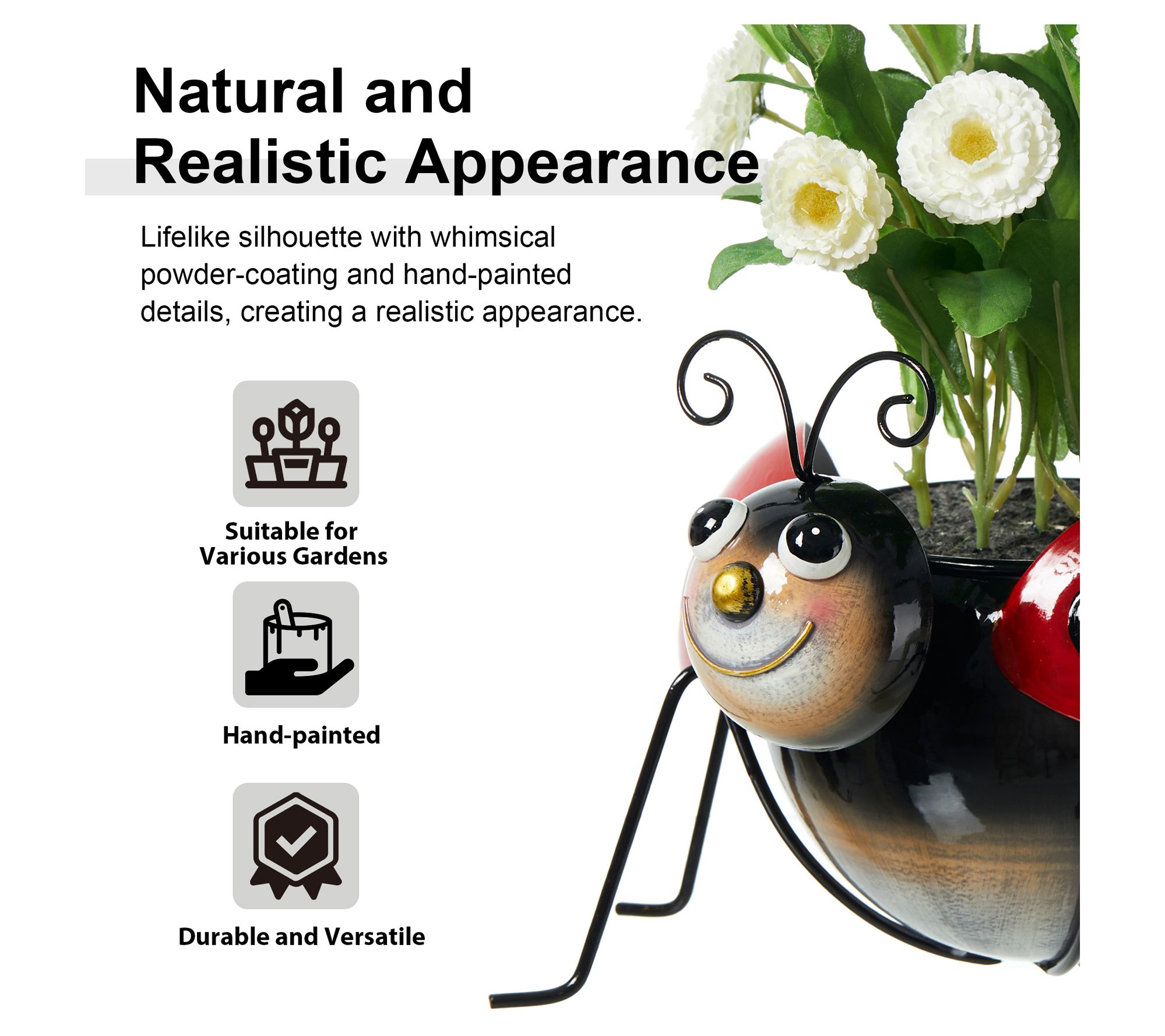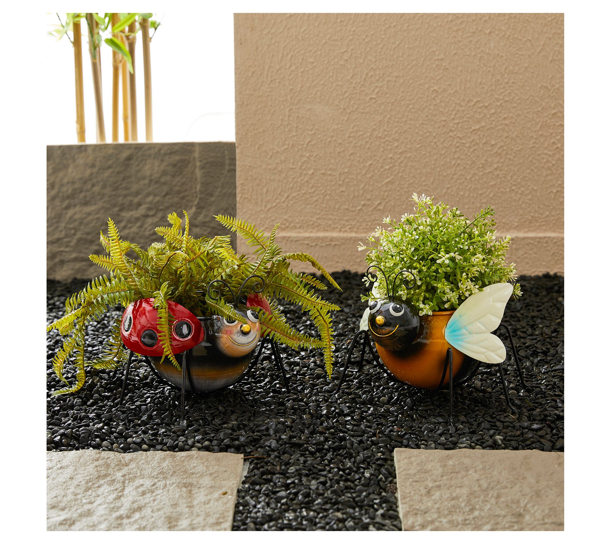 Glitzhome 10"W S/2 Metal Bee and Ladybug MetalStaute Planter