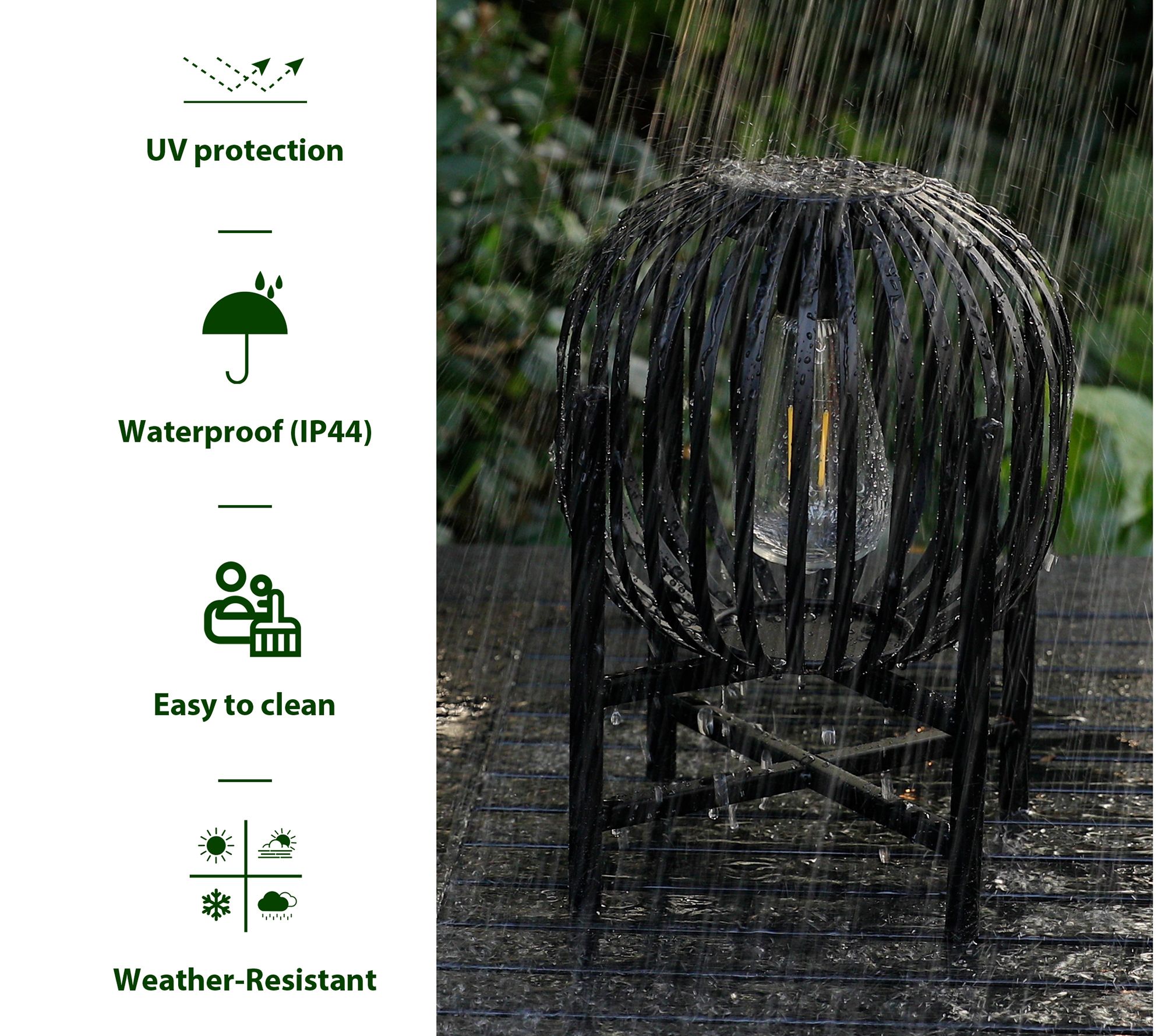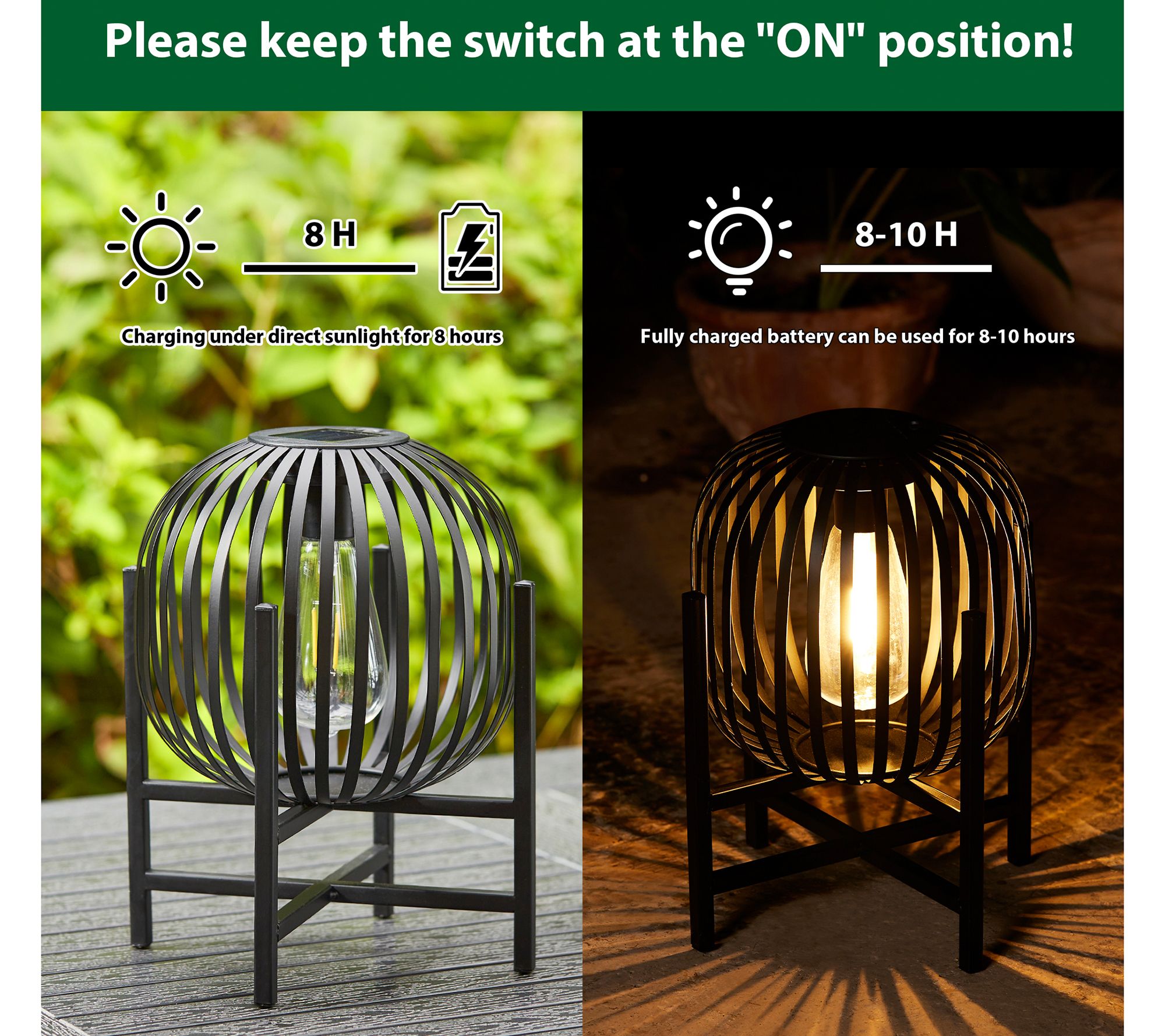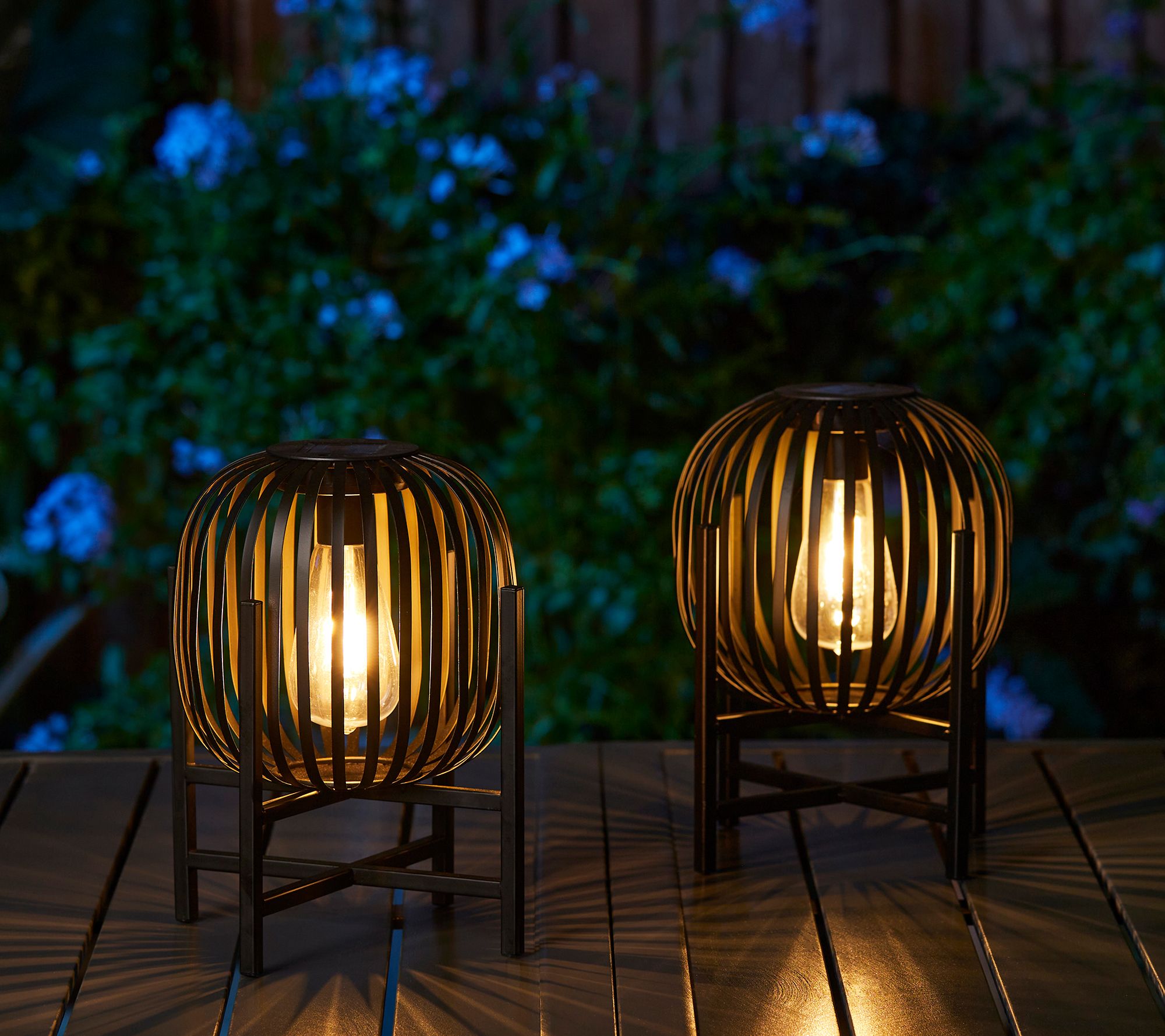 Illuminate your outdoor space with this pair of solar-powered lanterns, a set that beautifully blends tradition with innovation. These lanterns, inspired by classic woven designs, feature charming Edison bulbs that cast captivating light and shadows, creating an artistic and visually appealing ambiance. Constructed from durable powder-coated metal and plastic, they're perfect for year-round enjoyment, automatically lighting up at dusk and turning off at dawn. From Glitzhome.