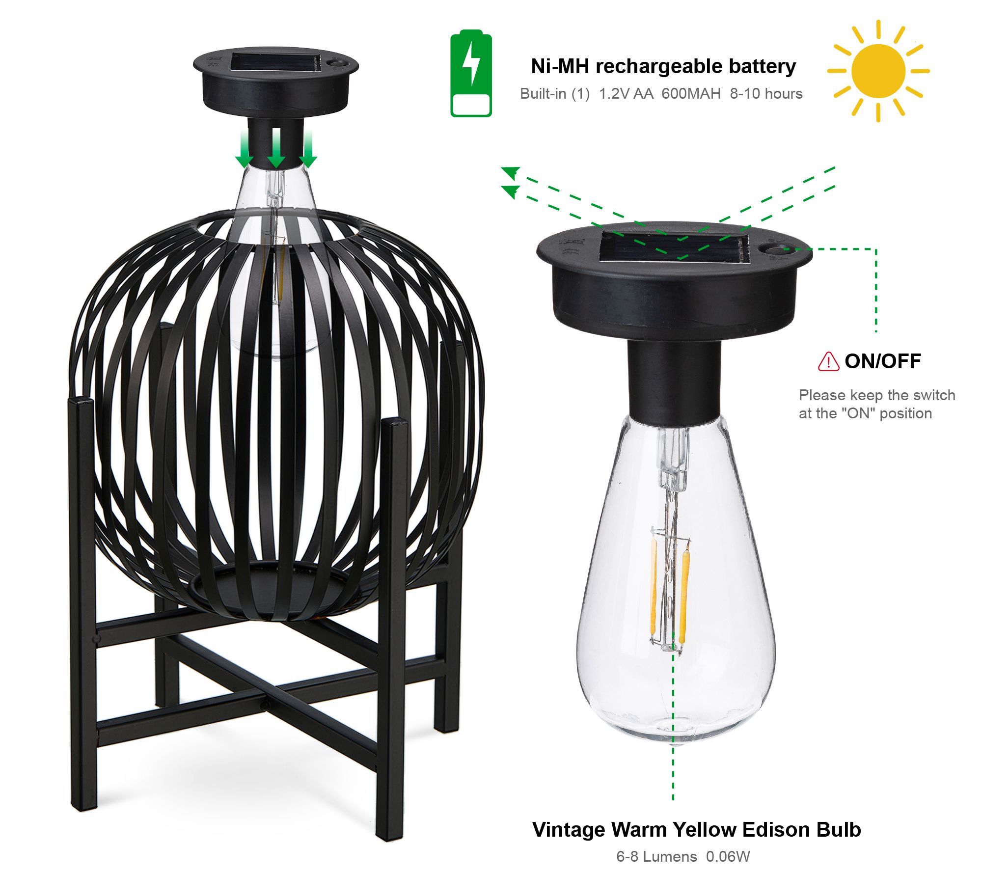 • Includes two solar-powered lanterns with built-in rechargeable AA Ni-MH batteries