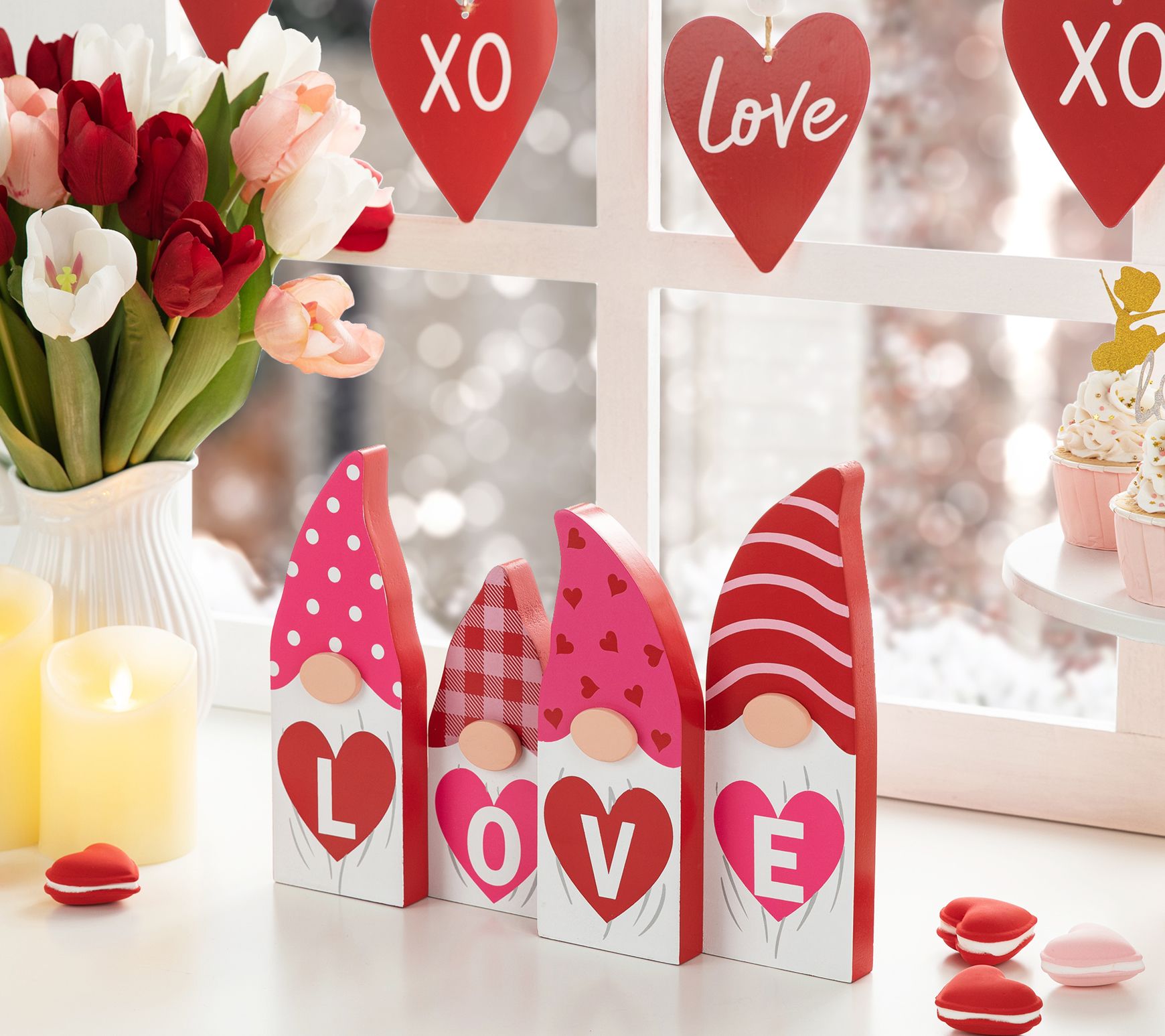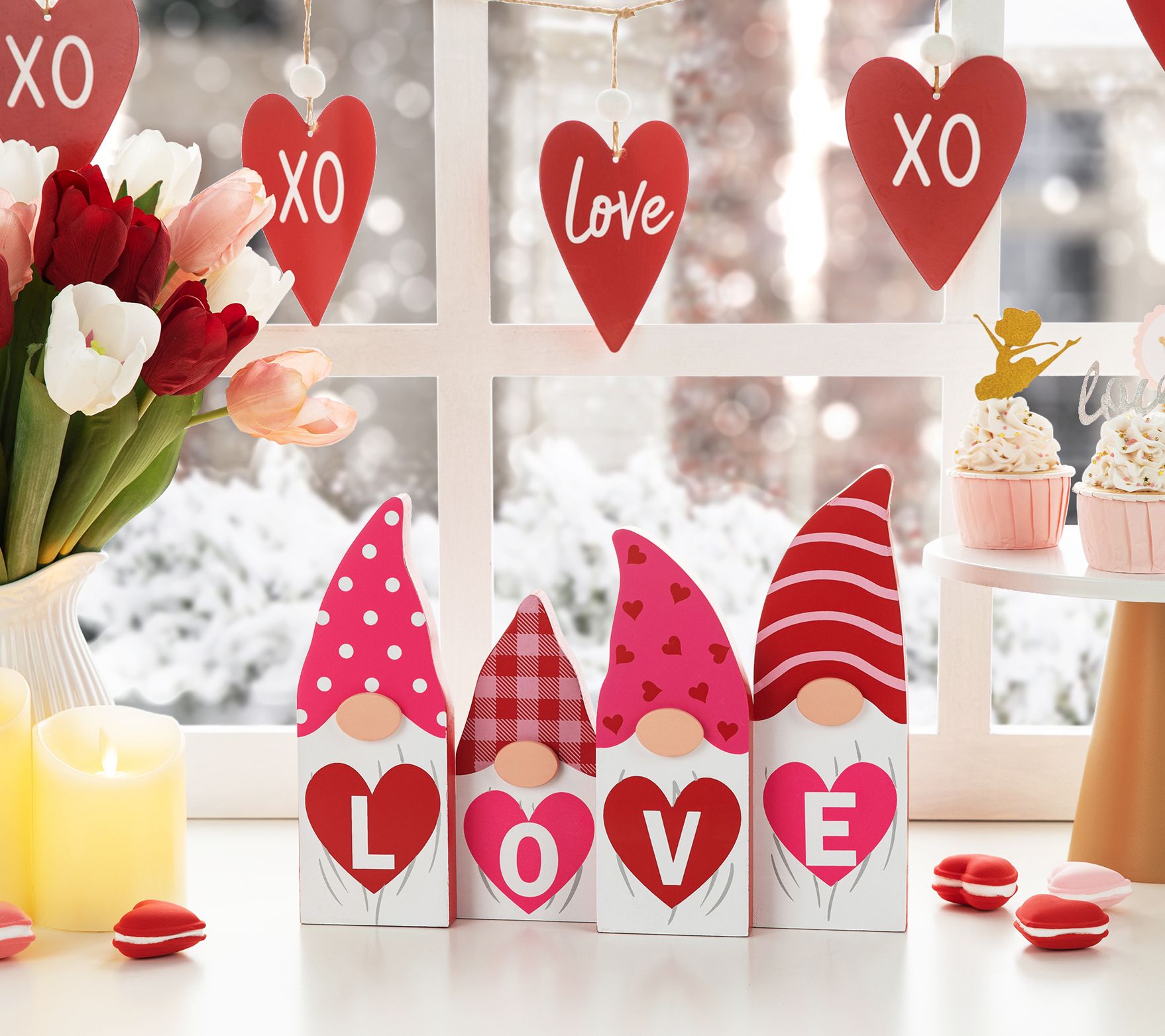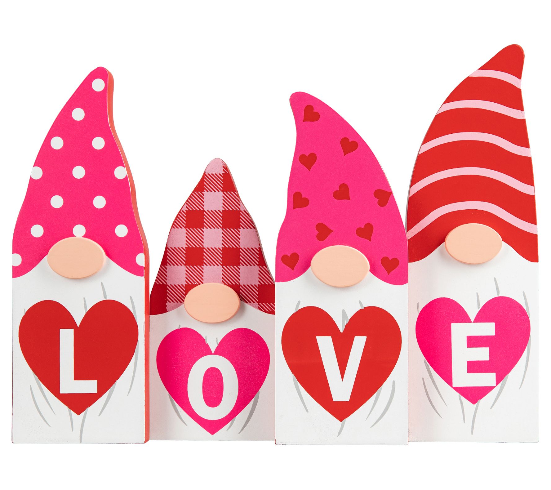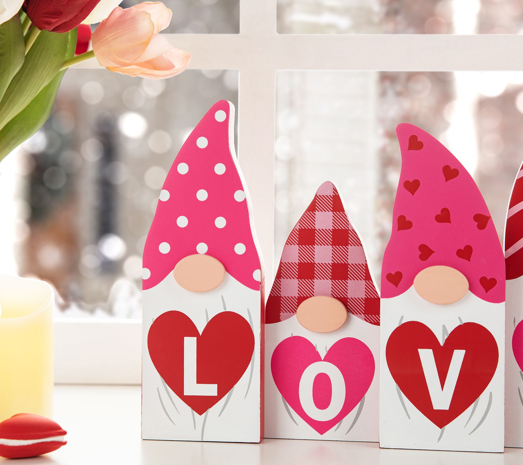 Perfect for Valentine's Day, these gnomes are all about bringing love into your space with their bright colors, fun patterned hats, and heart-shaped signs that spell out a sweet message. From Glitzhome.