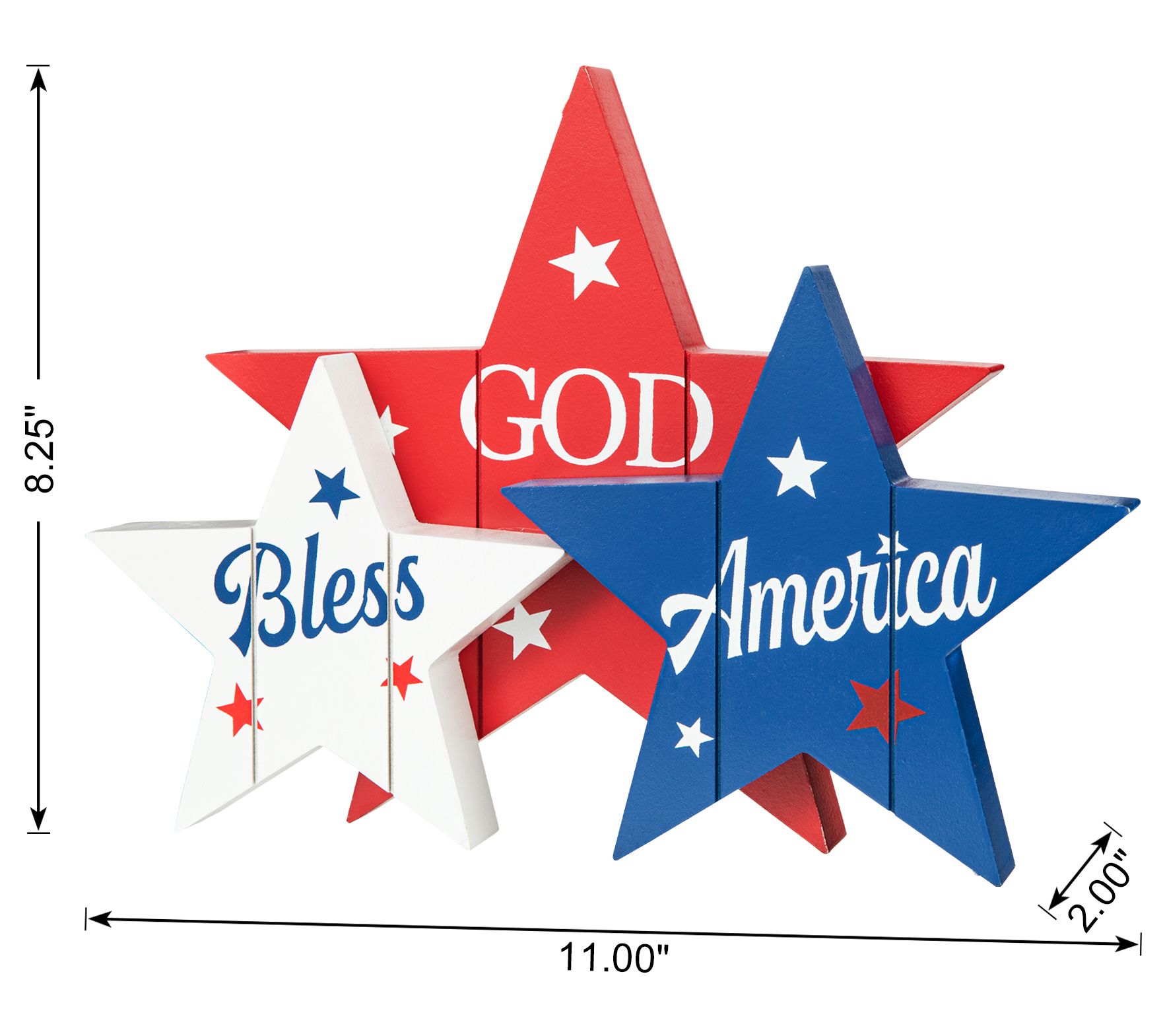 Glitzhome 11" Wooden Patriotic Americana Stars Table Topper