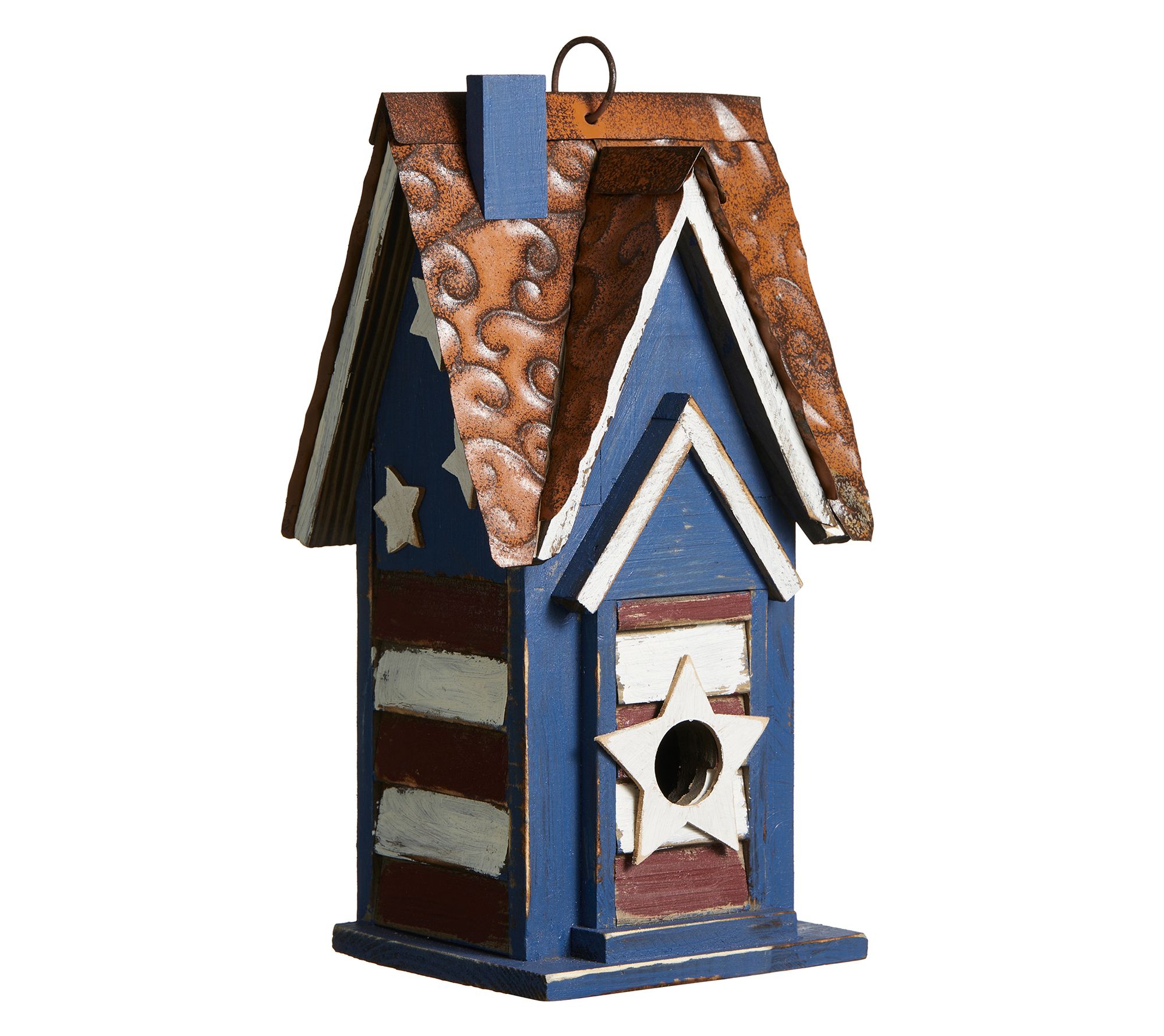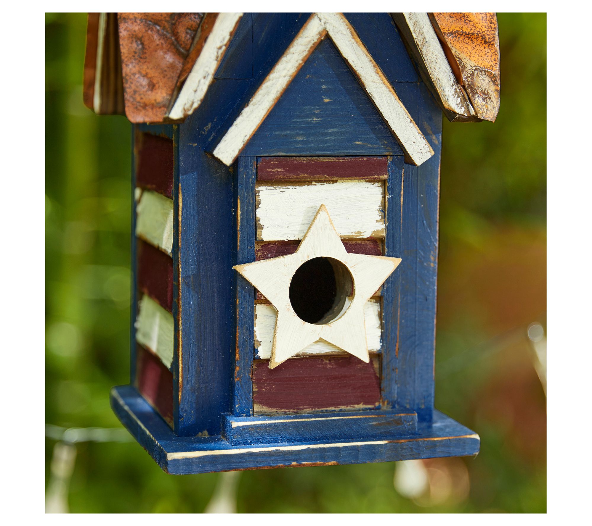 Glitzhome 12" USA Patriotic Distressed Villa Garden Birdhouse