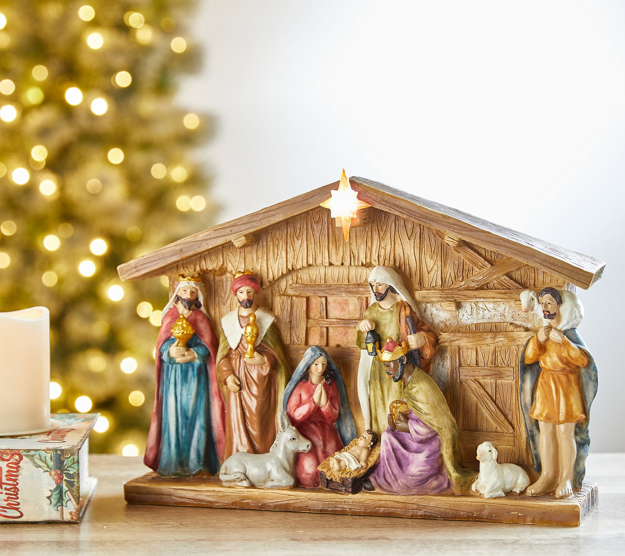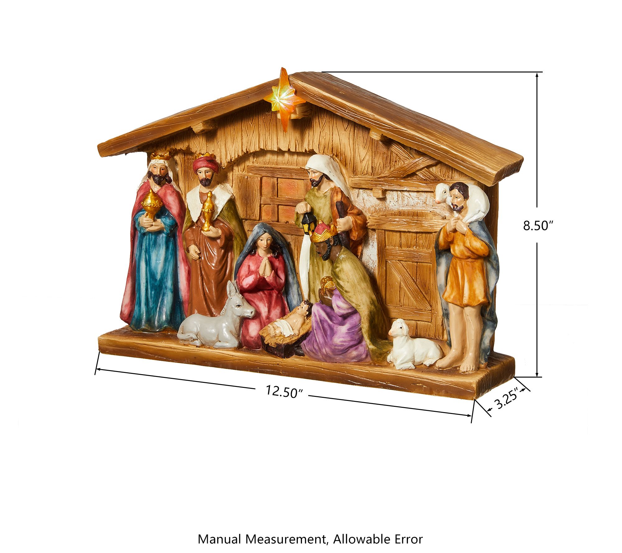 Glitzhome 12.5"L Light-Up Table Top Resin Nativ ity Scene