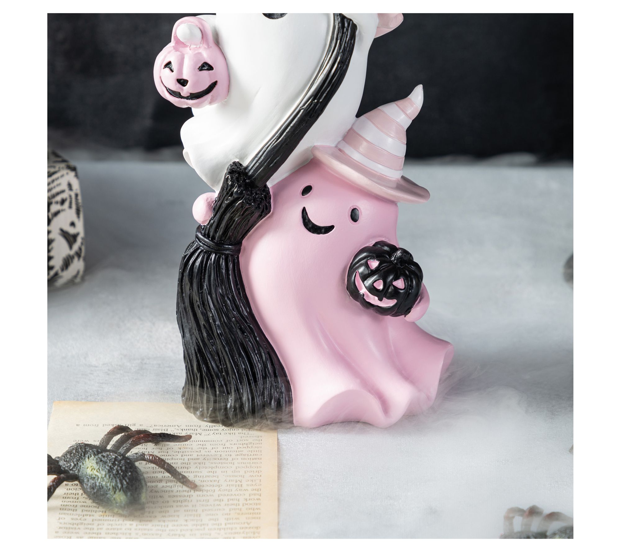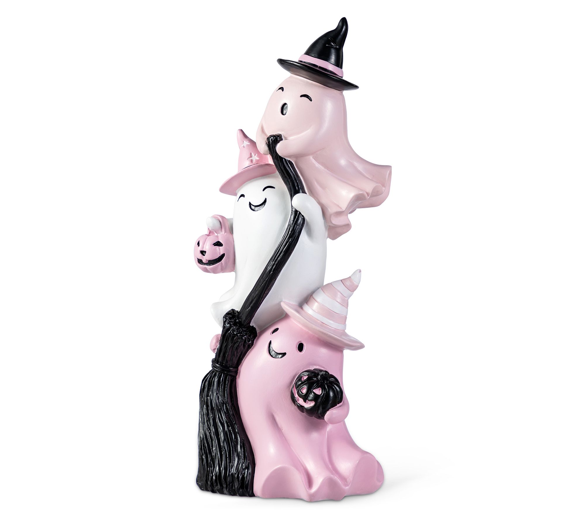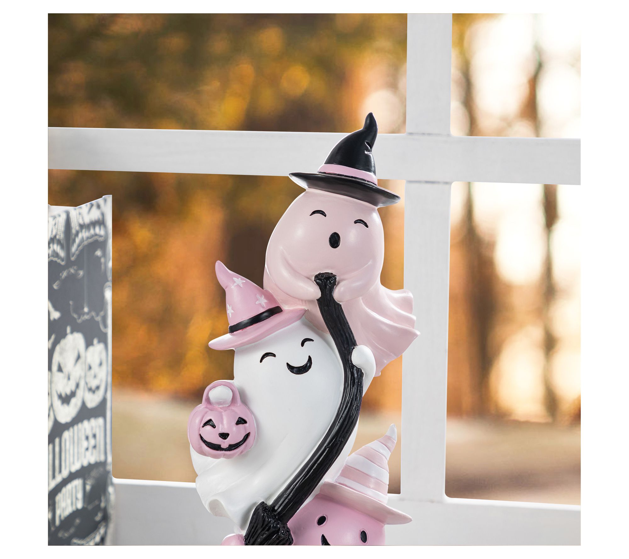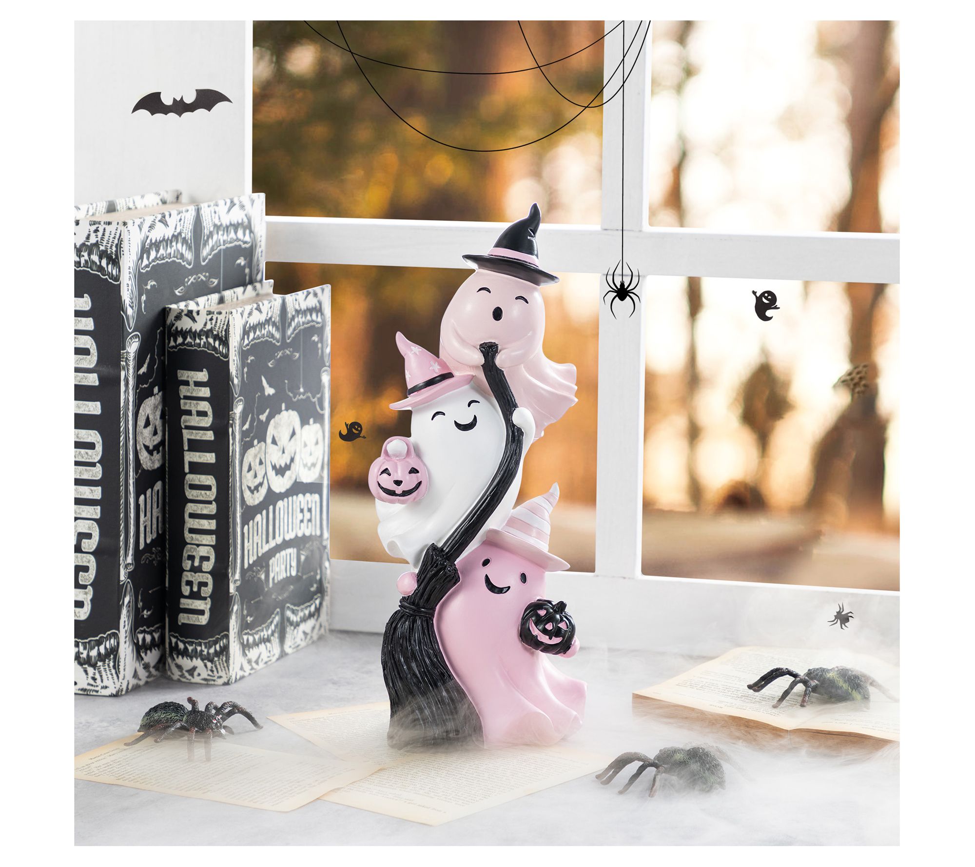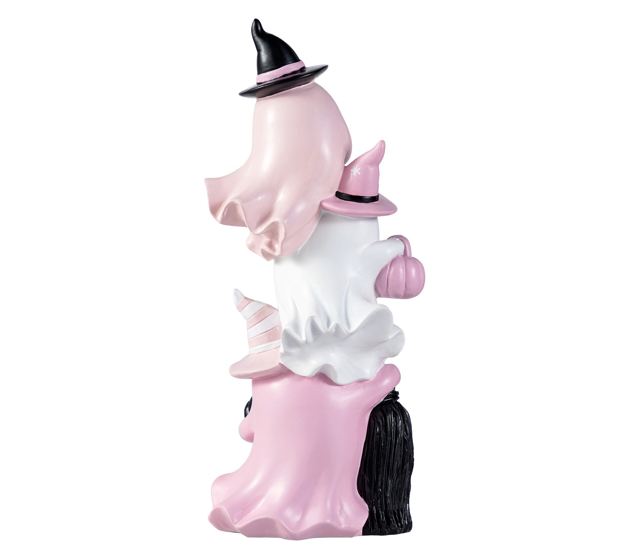 Whimsical spirits brighten up your Halloween festivities with stacked characters ready for a playful broomstick adventure. This festive accent easily sits on a foyer table or bookshelf, showing off cheerful pink and white expressions that spark smiles from guests big and small. A stand-out piece for a party, or an everyday nod to the season's fun. From Glitzhome.
