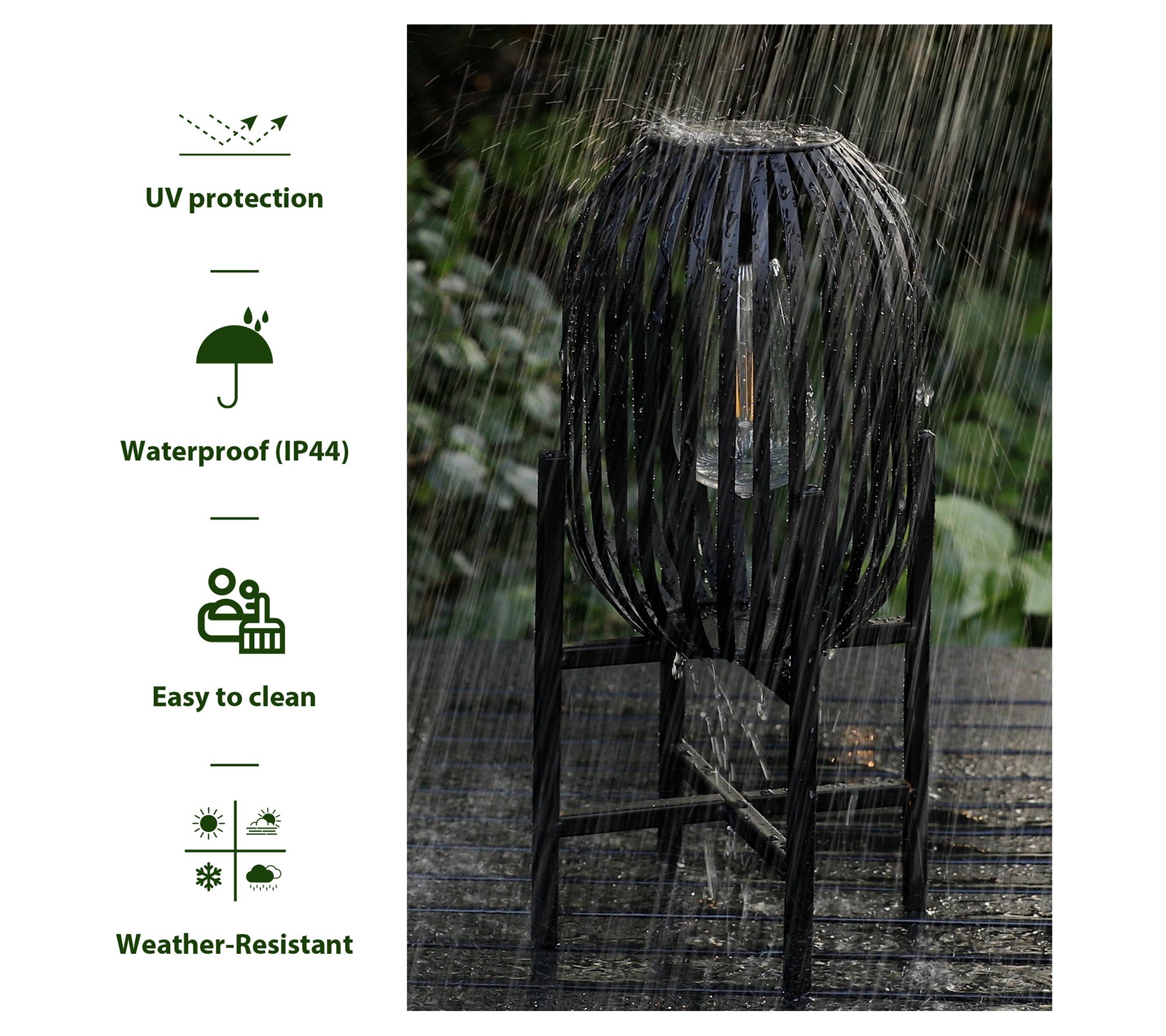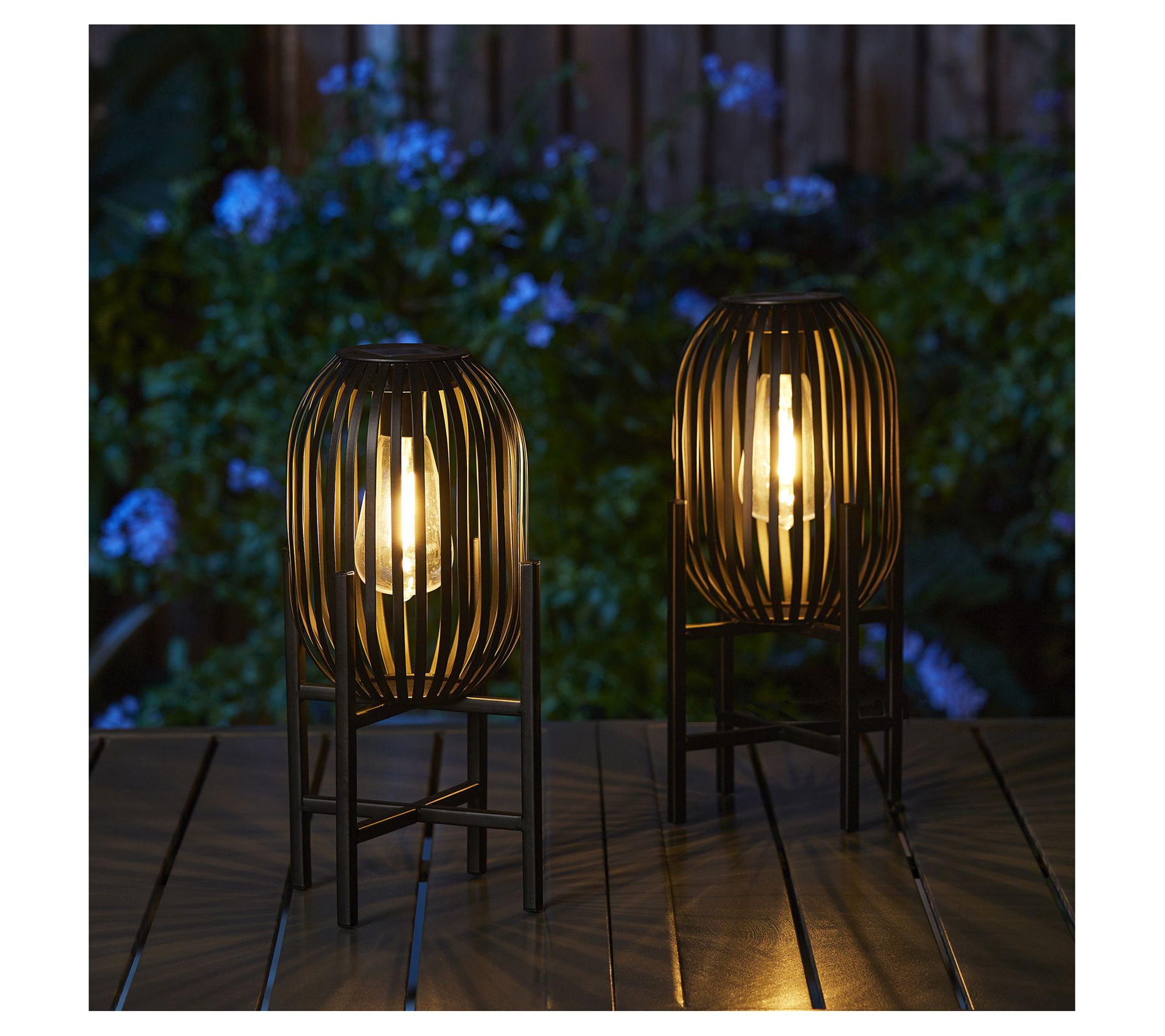 Illuminate your outdoor spaces with this set of two solar-powered lanterns, a pair that merges traditional charm with modern technology. These lanterns feature an Edison-style bulb within a woven-inspired metal design, casting enchanting lights and shadows to create a captivating ambiance in your garden, patio, or yard. Durable and designed for all seasons, they're powered by the sun, lighting up automatically at dusk to offer a warm, inviting glow. From Glitzhome.