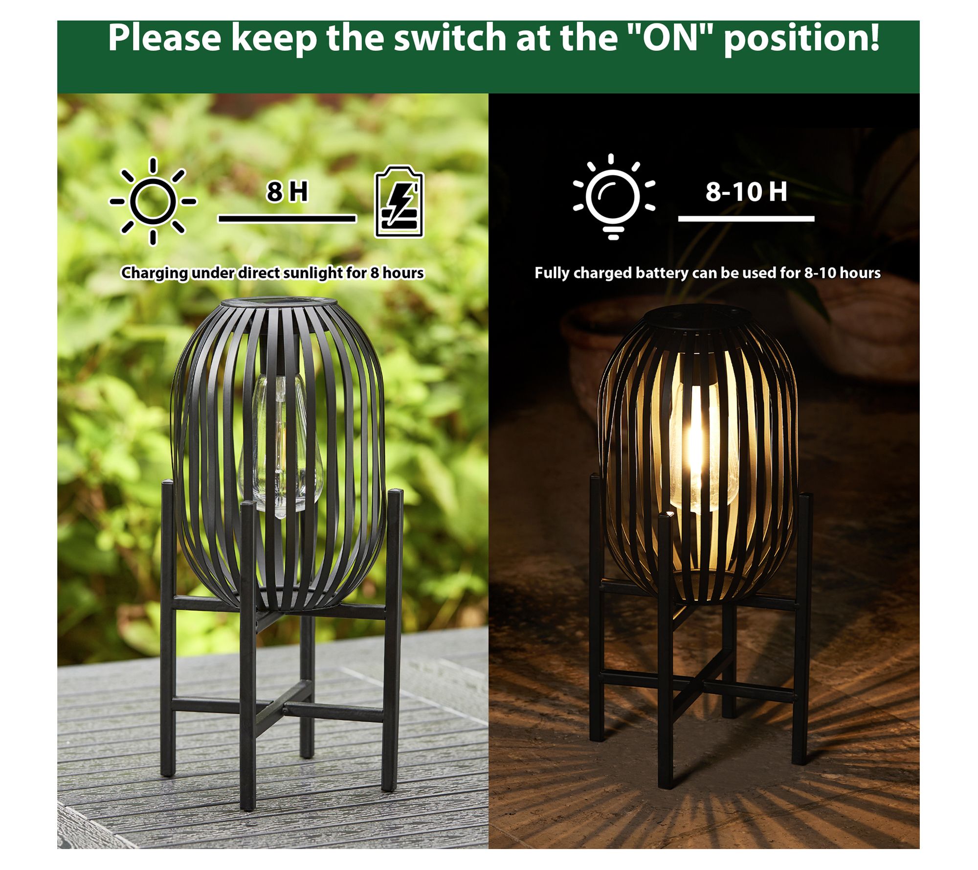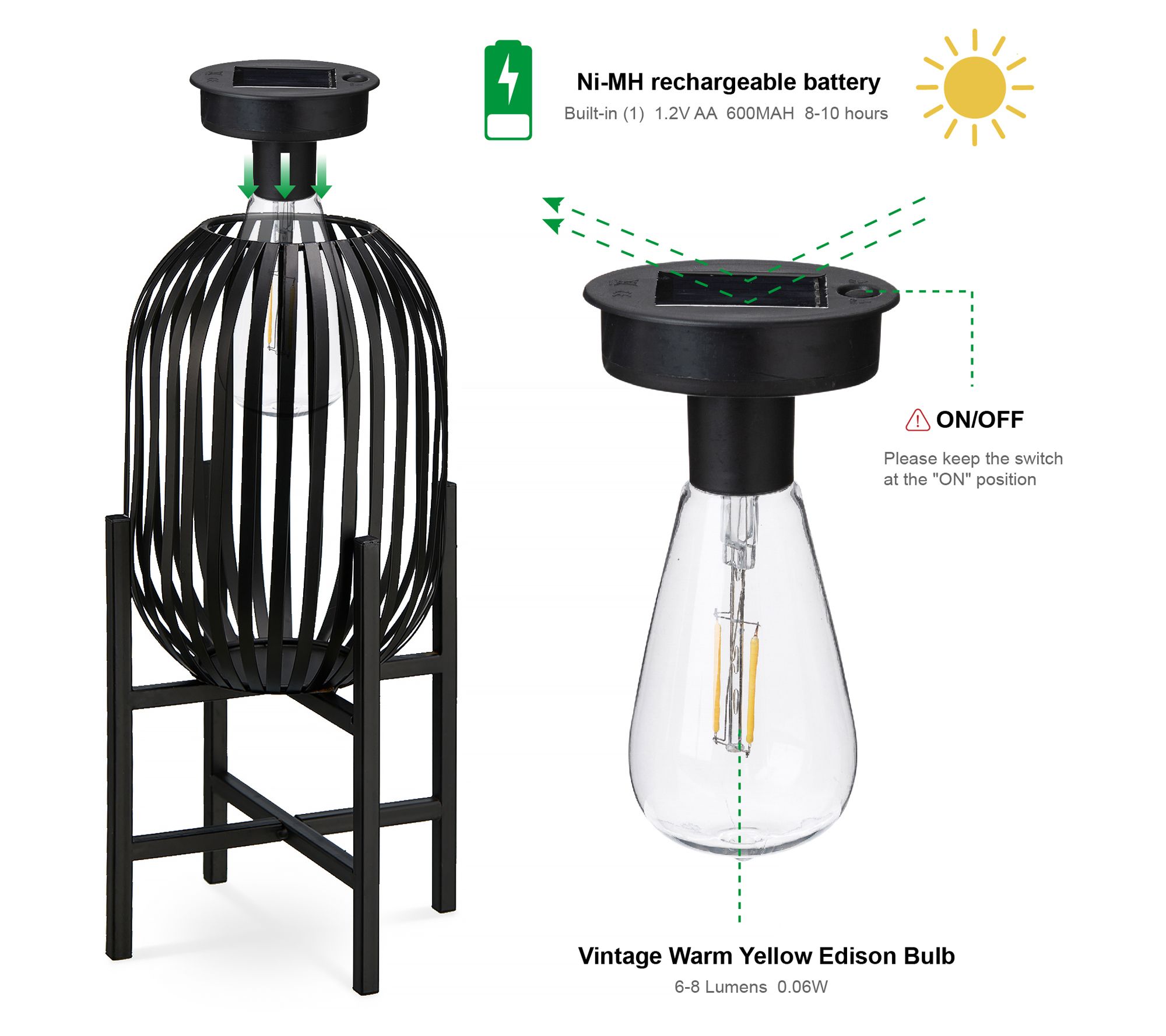 • Includes two solar-powered lanterns with two AA Ni-MH rechargeable batteries
