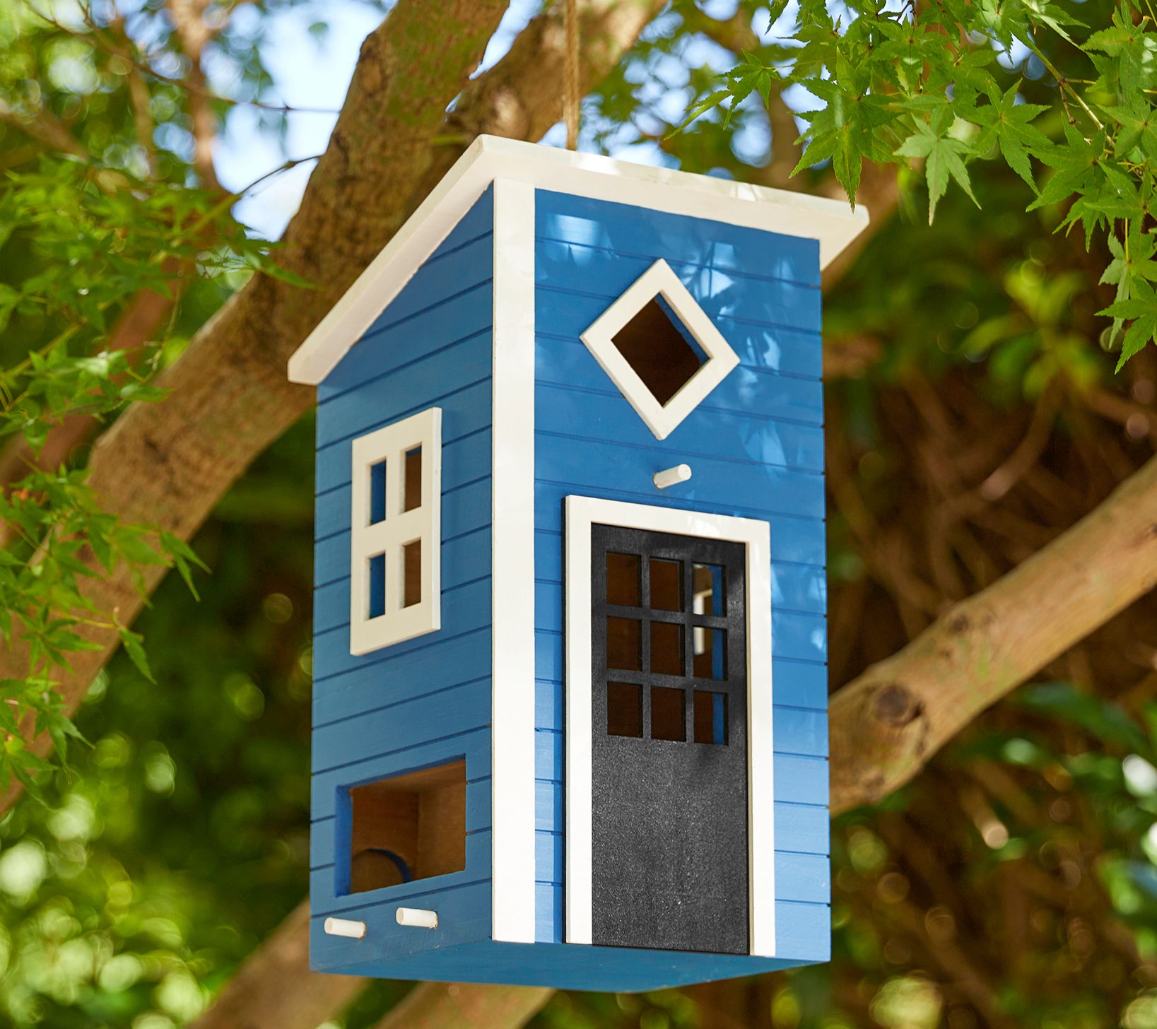 This charming birdhouse not only offers a cozy home for your feathered friends but also adds a touch of modern elegance to your outdoor space. The eye-catching sea blue and white color combination is perfect for your garden, patio, or backyard. Watching birds come and go from this lovely birdhouse will surely bring you joy. From Glitzhome.