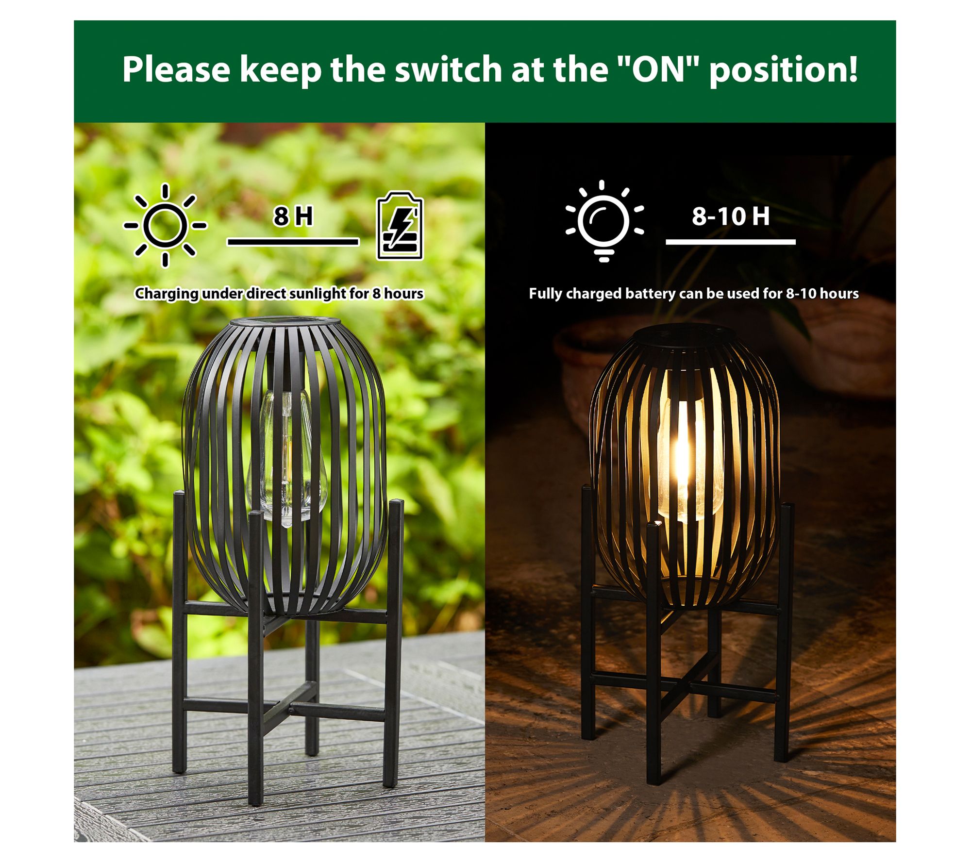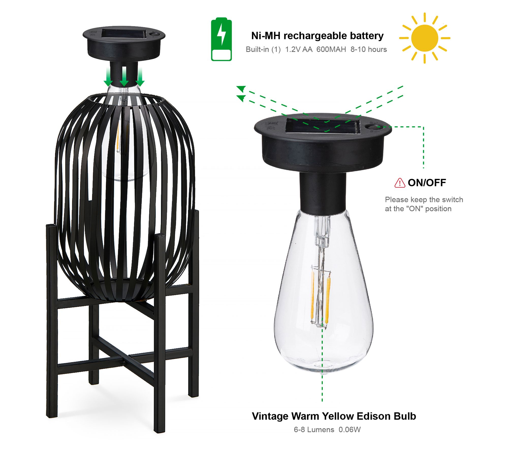 Transform your outdoor setting into an enchanting haven with this cage-style standing lantern. Its vintage Edison bulb not only illuminates your space with a warm yellow glow but also creates captivating lights and shadows, thanks to its delicate woven-inspired design. Perfect for any garden, patio, or yard, this lantern combines the durability of powder-coated metal and plastic with solar-powered convenience, ensuring it shines from dusk until dawn without any electrical cords. From Glitzhome.