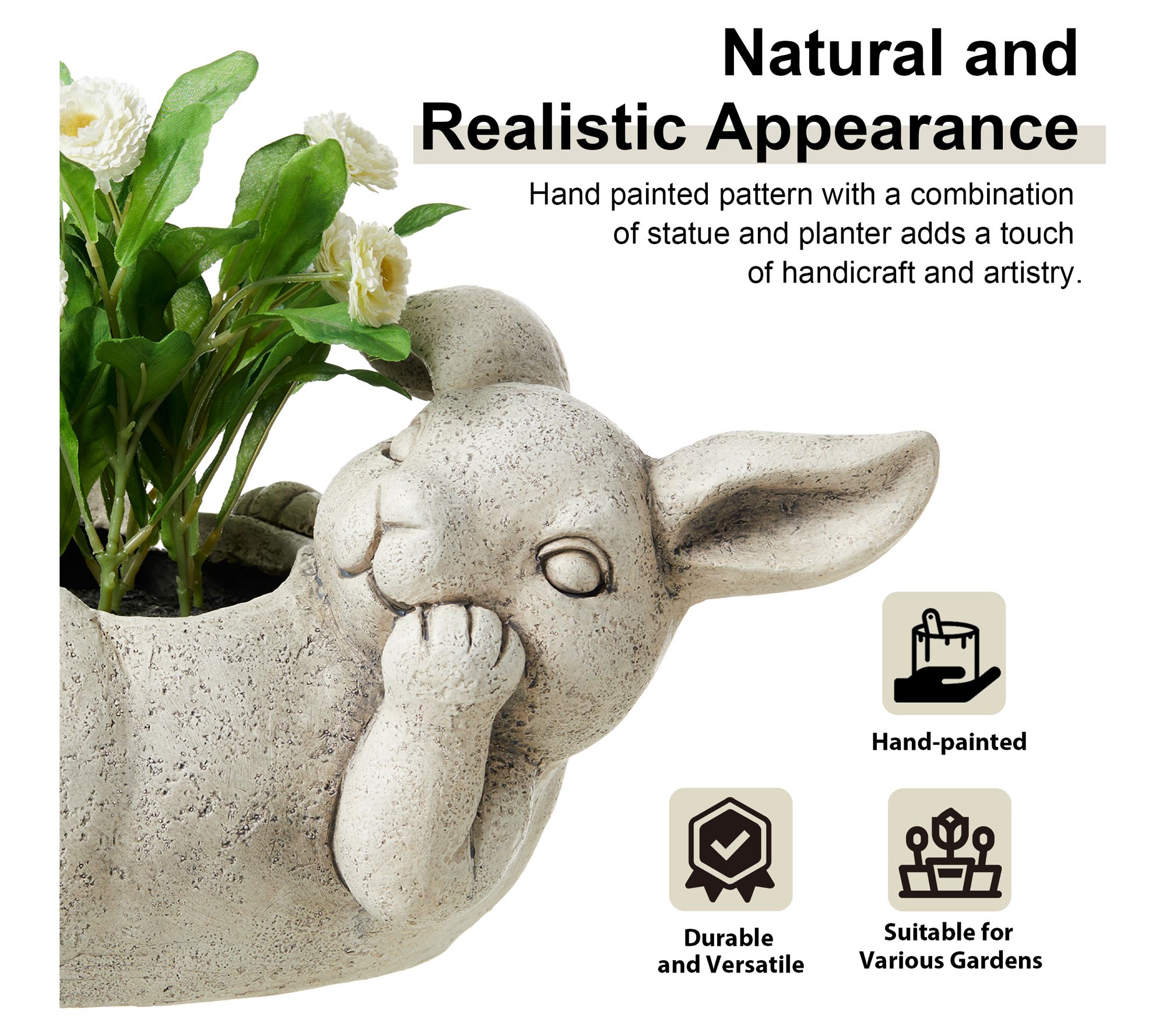 Add a fun, whimsical touch to your garden or patio with this rabbit-shaped planter. This vibrant piece combines a playful design with functional container structure. Ideal for showcasing your favorite greenery or blooms, it helps transform any space into a beautiful and relaxing environment. From Glitzhome.