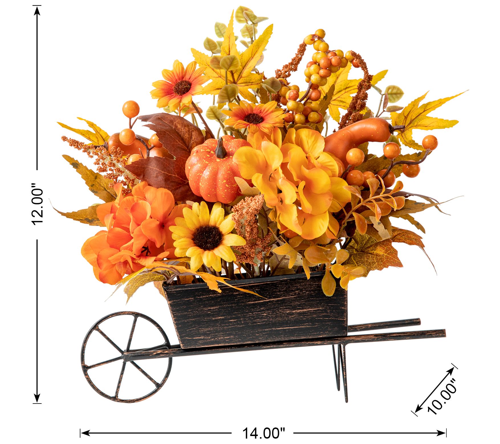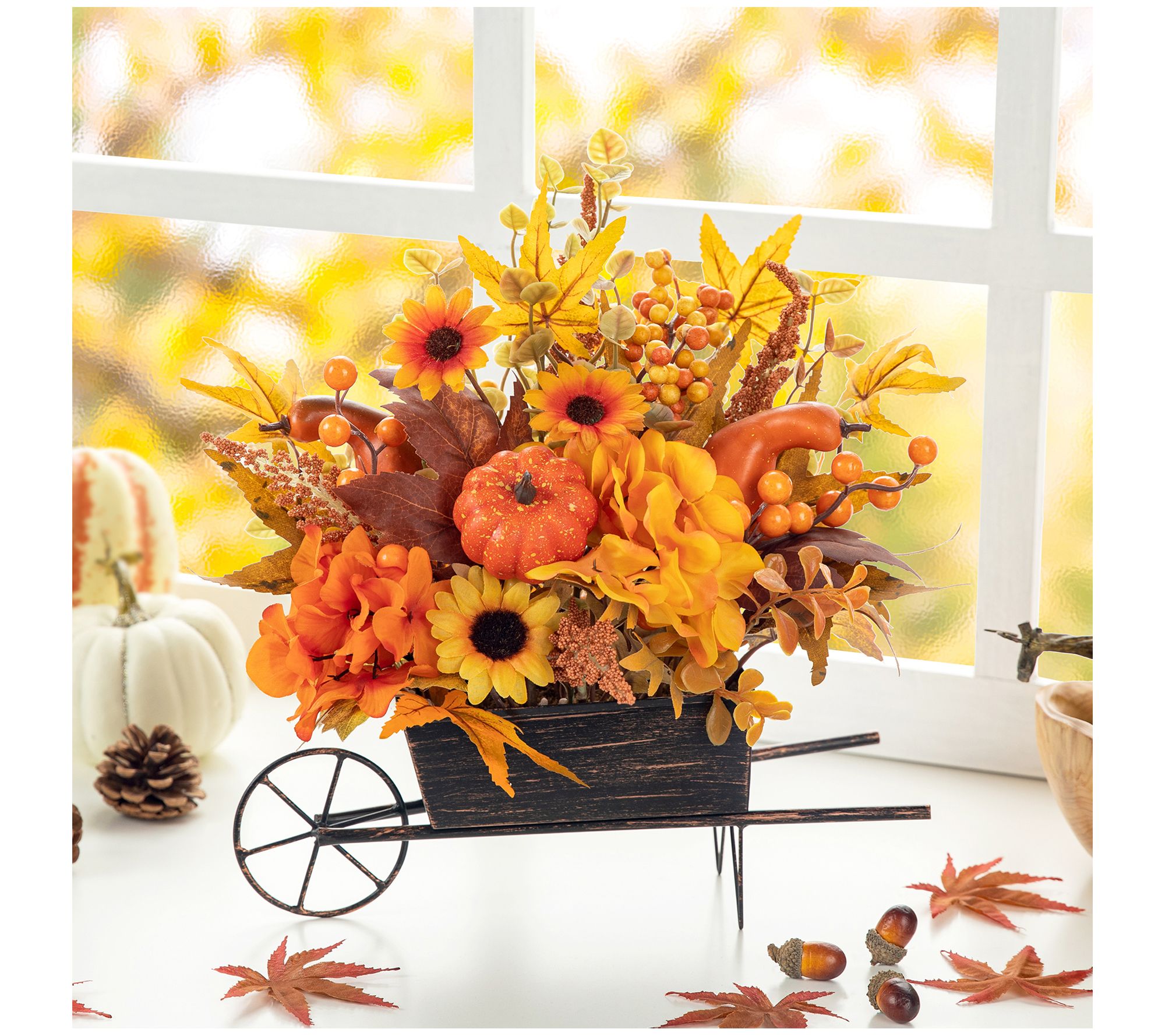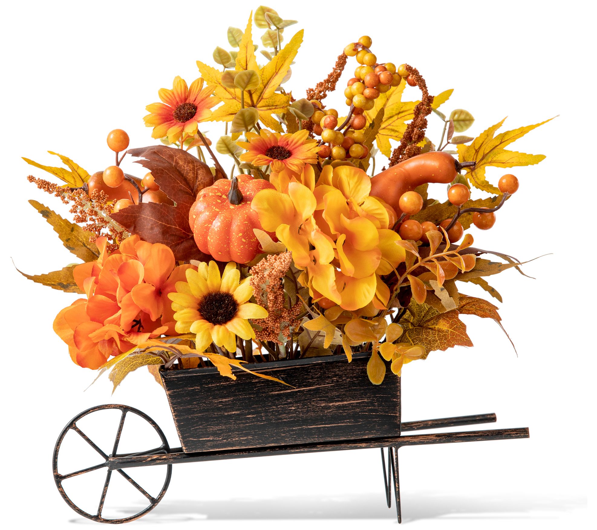Glitzhome 14"L Fall Harvest Floral Cart Centerpece