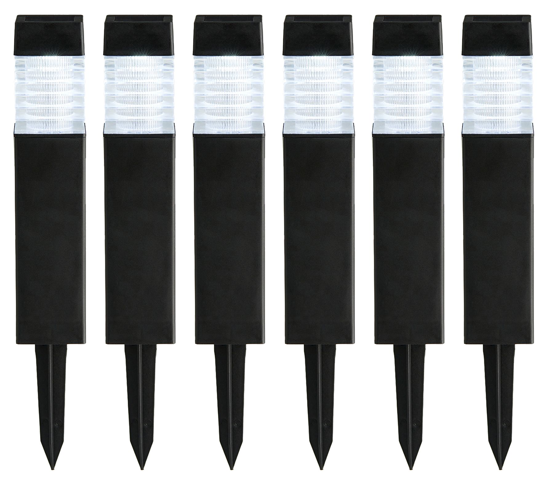 Transform your outdoor area into a beautifully illuminated space with this set of six solar-powered texture pathway stake lights. These lights boast a minimalist and stylish design, complete with a textured lens for an intriguing light pattern. Ideal for lighting up pathways in your garden, yard, or patio, they're crafted from high-quality plastic for durability across all seasons. The integrated solar panel ensures the rechargeable battery stays charged, ready to cast a soft white glow that enhances evening gatherings or yard games. From Glitzhome.