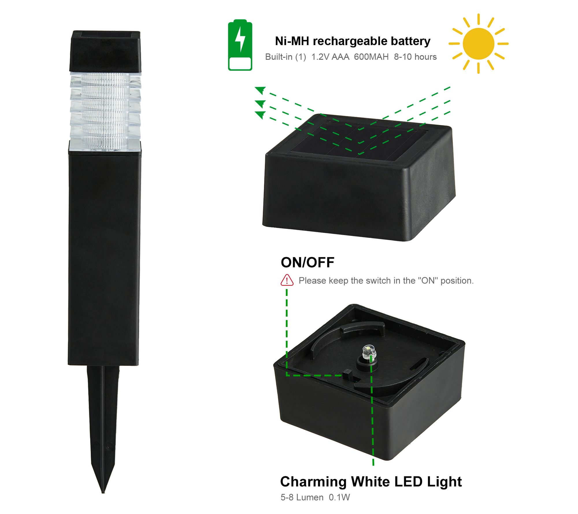 • Solar-powered with dusk-to-dawn sensor