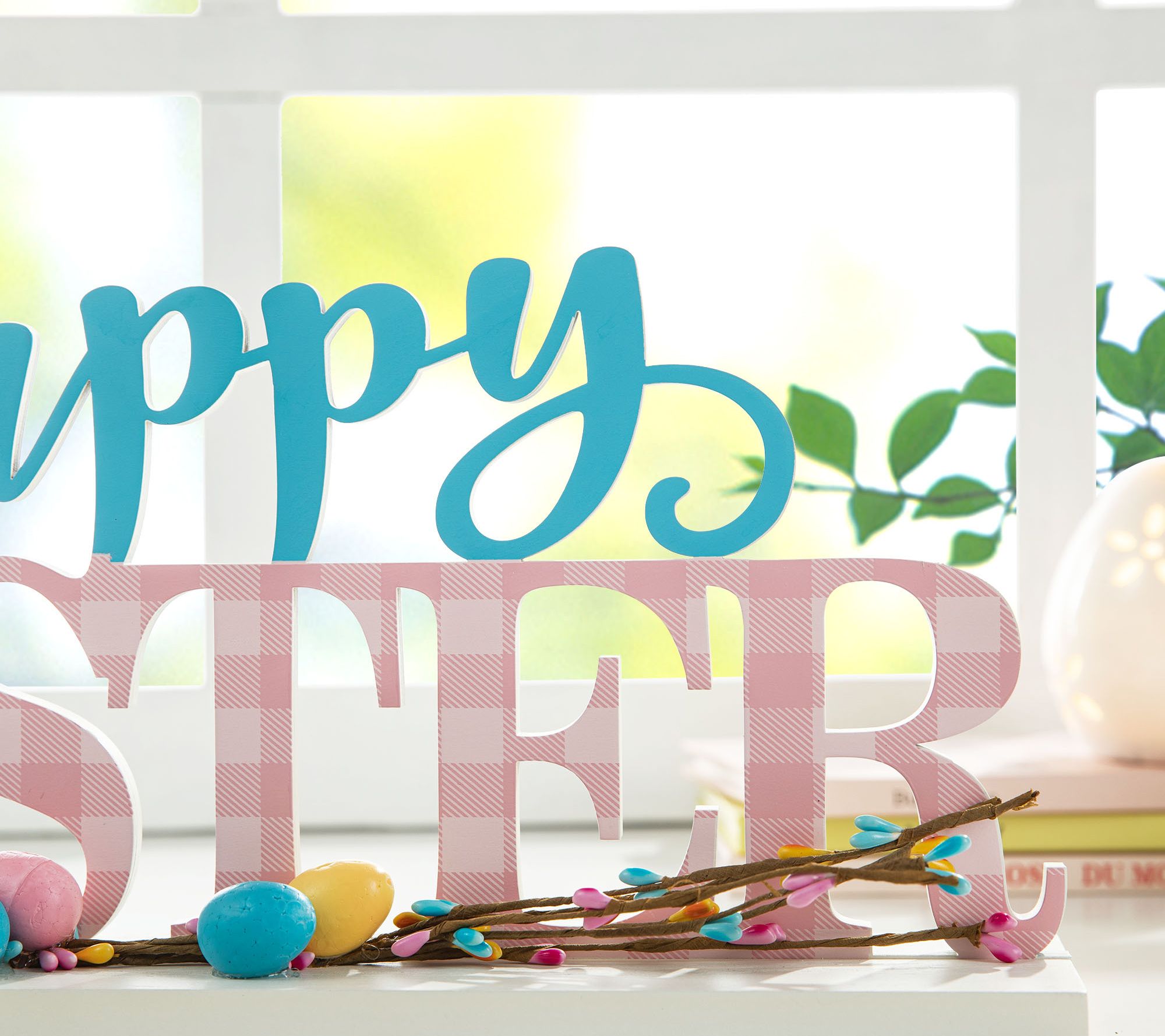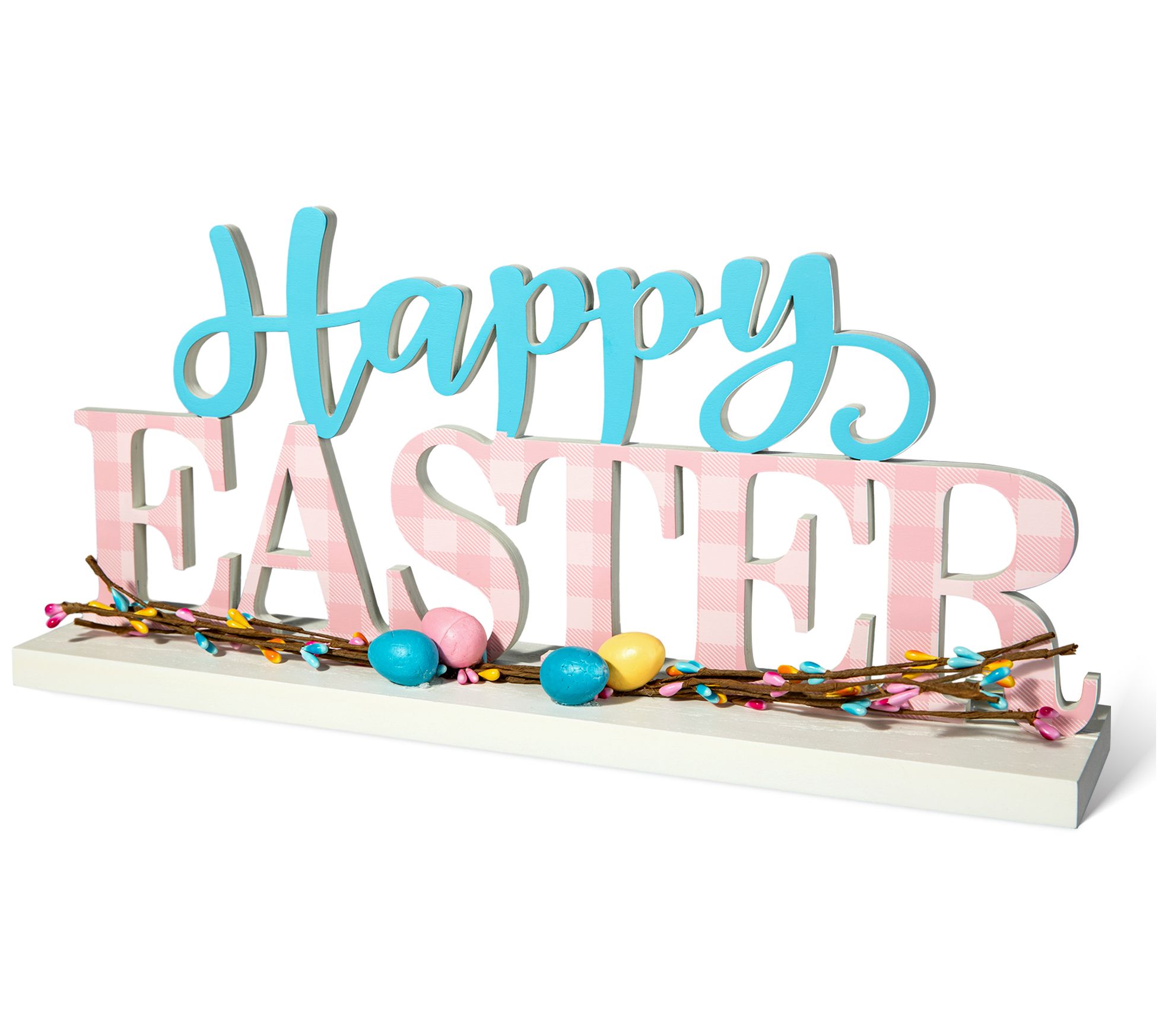 With a beautiful mix of colors and an Easter greeting highlighted by bright eggs, this seasonal decor captures the essence of springtime and enhances any mantel, table, or windowsill. From Glitzhome.