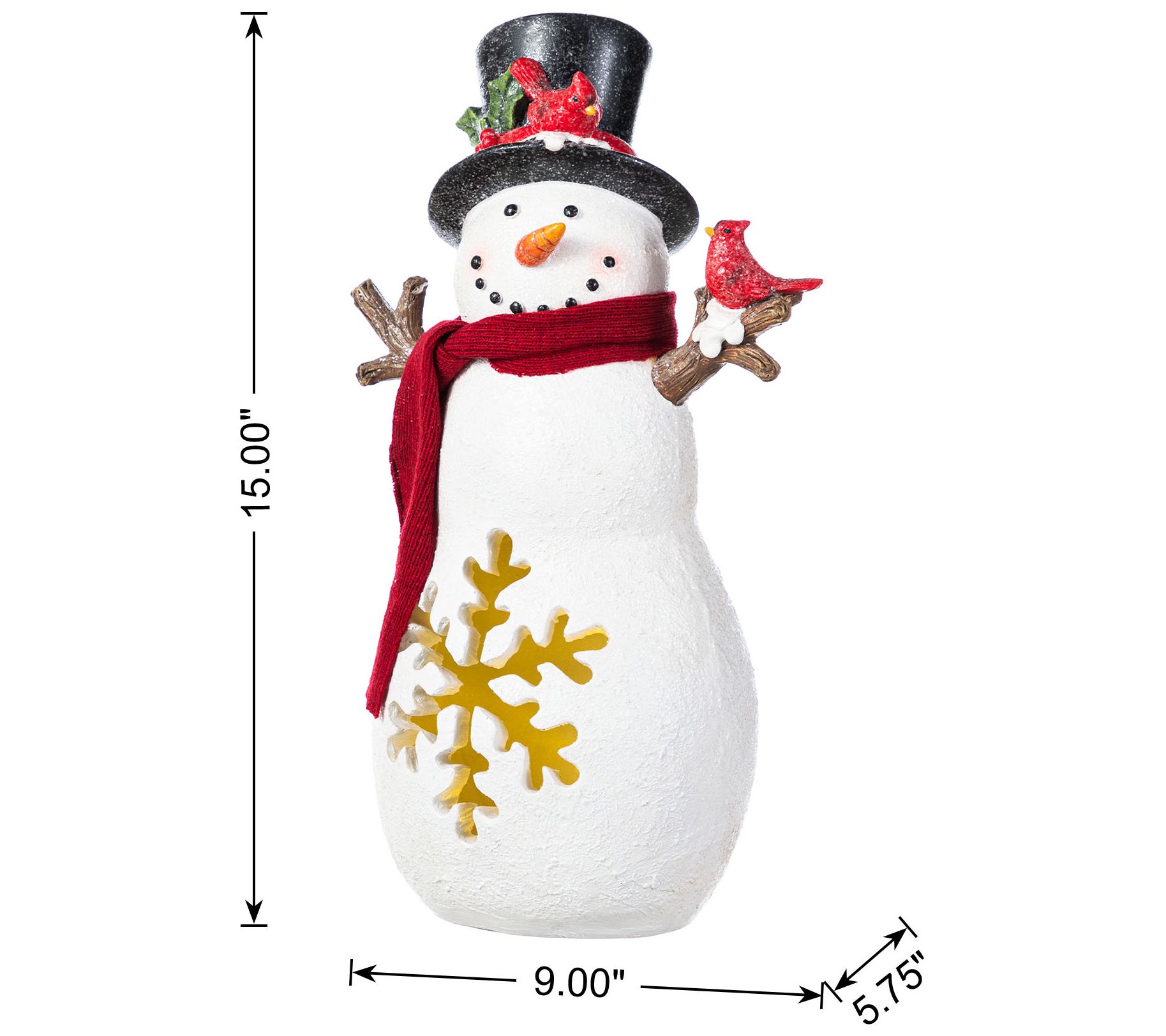 Bring festivity to your holiday season with this charming snowman decoration. His red scarf and top hat adorned with a cardinal add a whimsical touch to any table or mantel, while the warm glow creates a cozy ambiance. Crafted to fit perfectly within indoor spaces, this decor piece is an ideal way to elevate your seasonal setting. Let its inviting presence turn your space into a cheerful winter wonderland this Christmas. From Glitzhome.