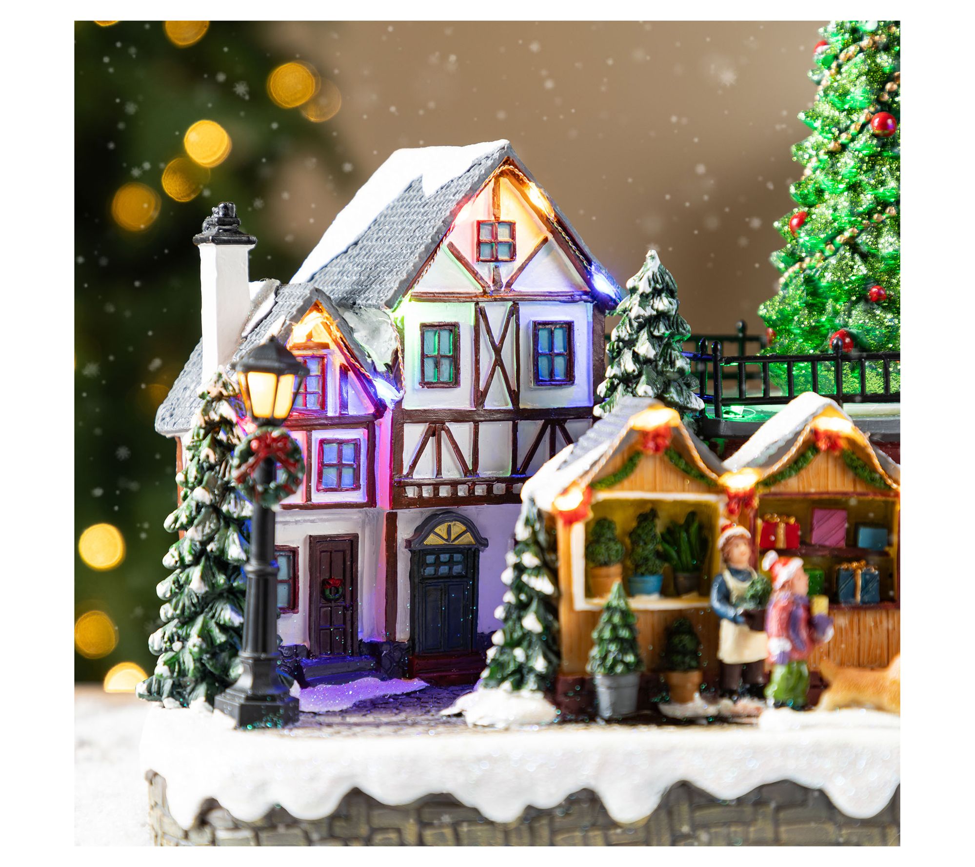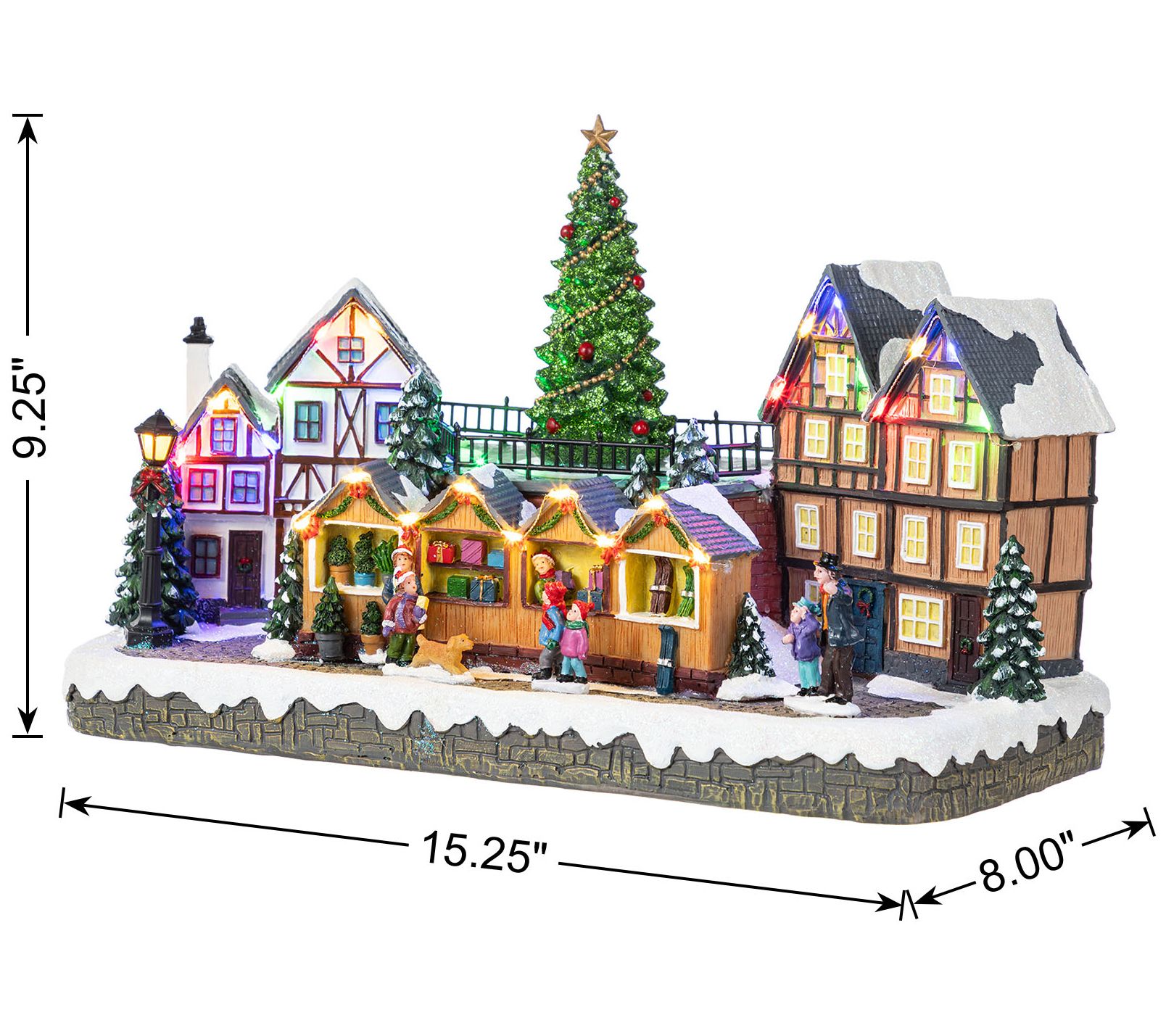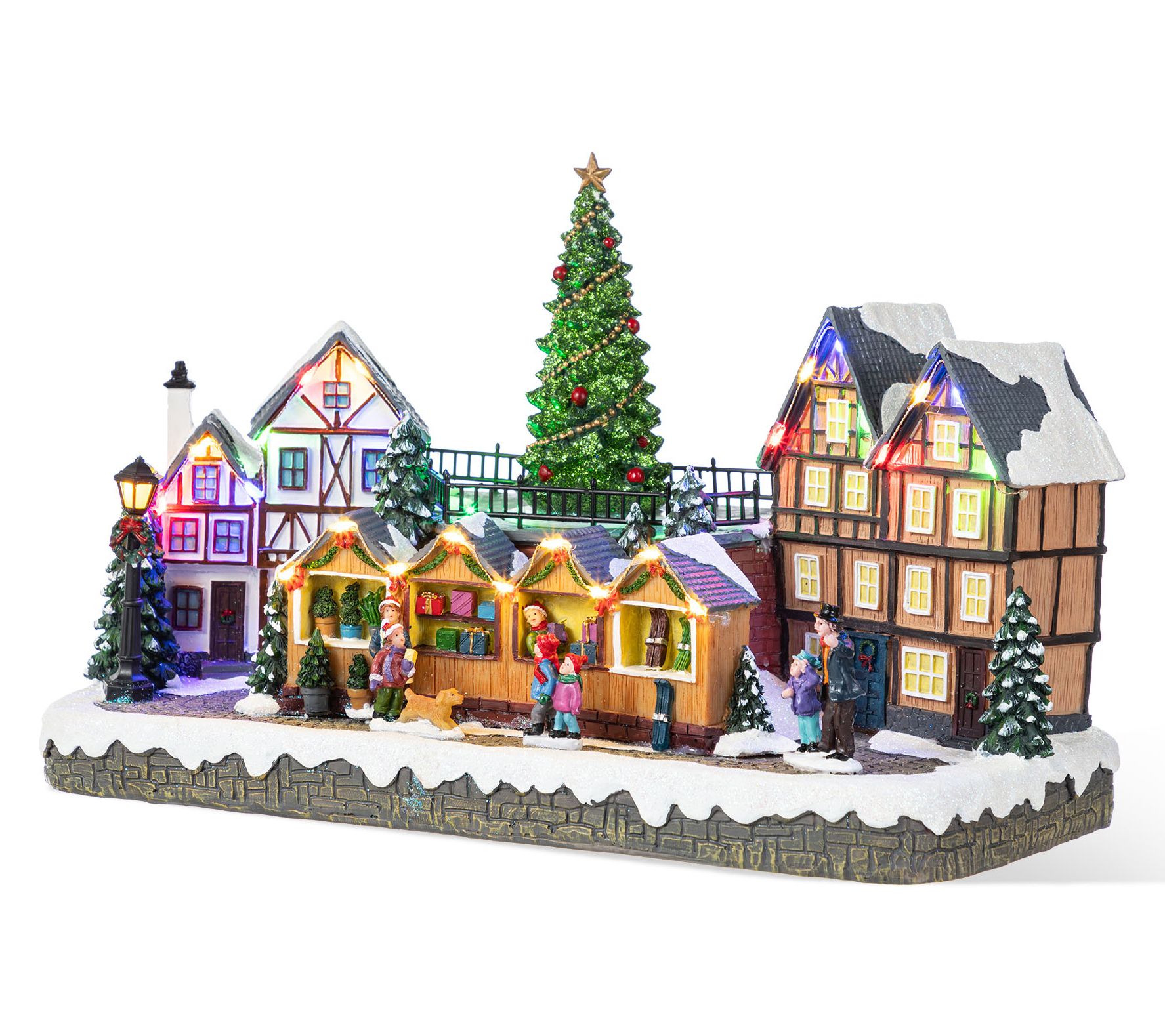 Transport yourself to a whimsical winter wonderland with this oversized lighted village display. Picture this charming scene: snow-topped houses aglow with multicolored lights, a jolly Christmas tree at the heart, and delightful villagers bustling around a market. It's a picturesque setting that invites warmth and joy to any room it touches. Perfect for creating a festive centerpiece on your table or shelf, spreading cheer throughout the holiday season. From Glitzhome.