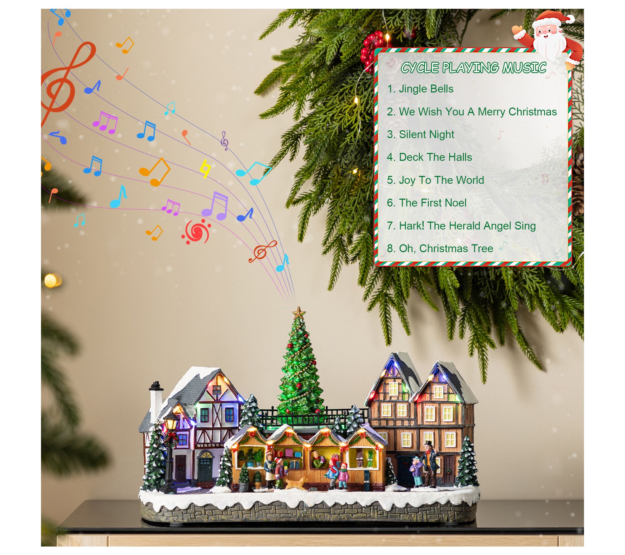 • Includes musical function with eight Christmas songs
