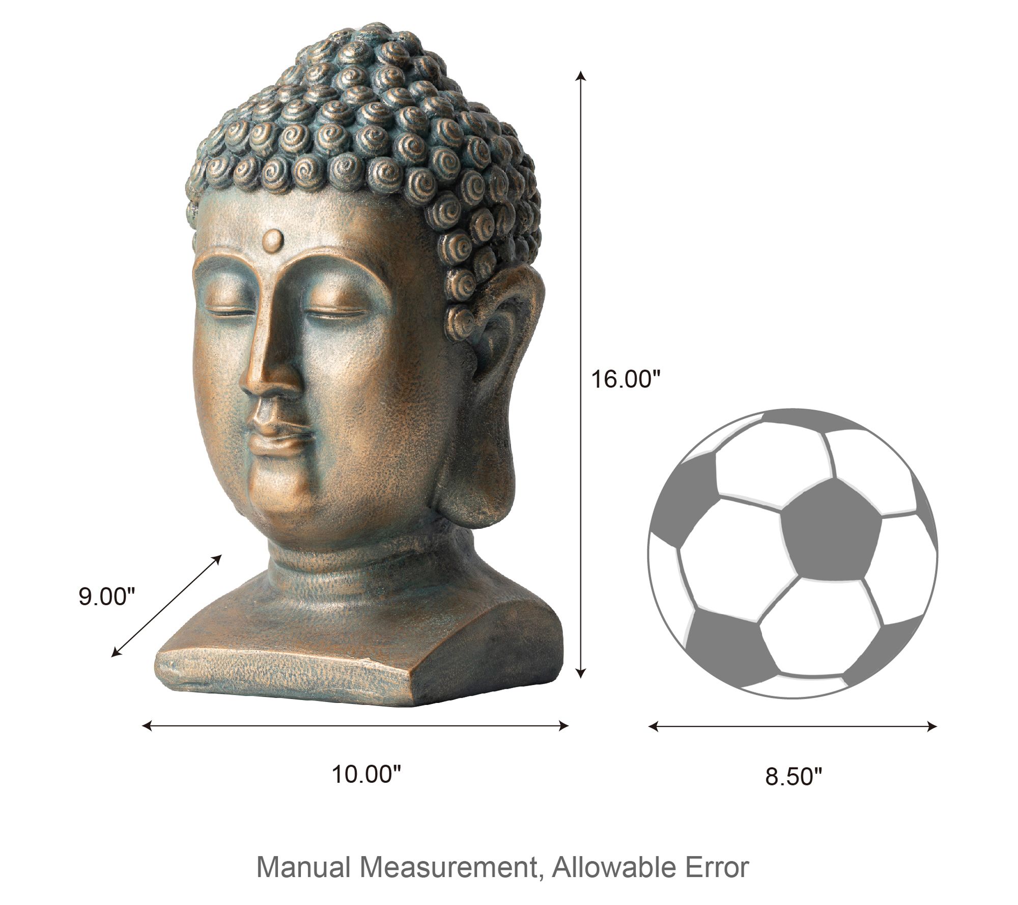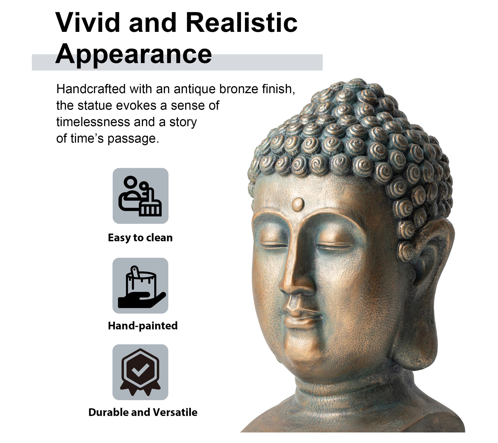 Enhancing your garden with a classic touch, this elegant Buddha Head statue adds a serene and compassionate atmosphere to any space. Crafted with an antiqued bronze finish, it captures the timelessness of traditional Zen art, fitting seamlessly into your garden, backyard, patio, or indoor decor. From Glitzhome.
