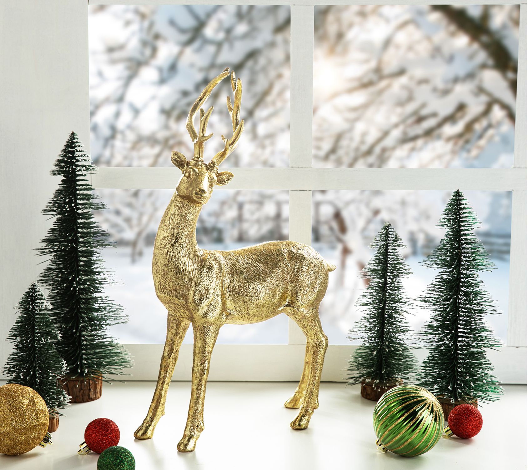 Add a touch of elegance to your holiday decor with this reindeer table decor. Its luxurious champagne finish and graceful lying posture bring a sophisticated charm to any Christmas setting, making it a captivating centerpiece for your table or shelf. From Glitzhome.