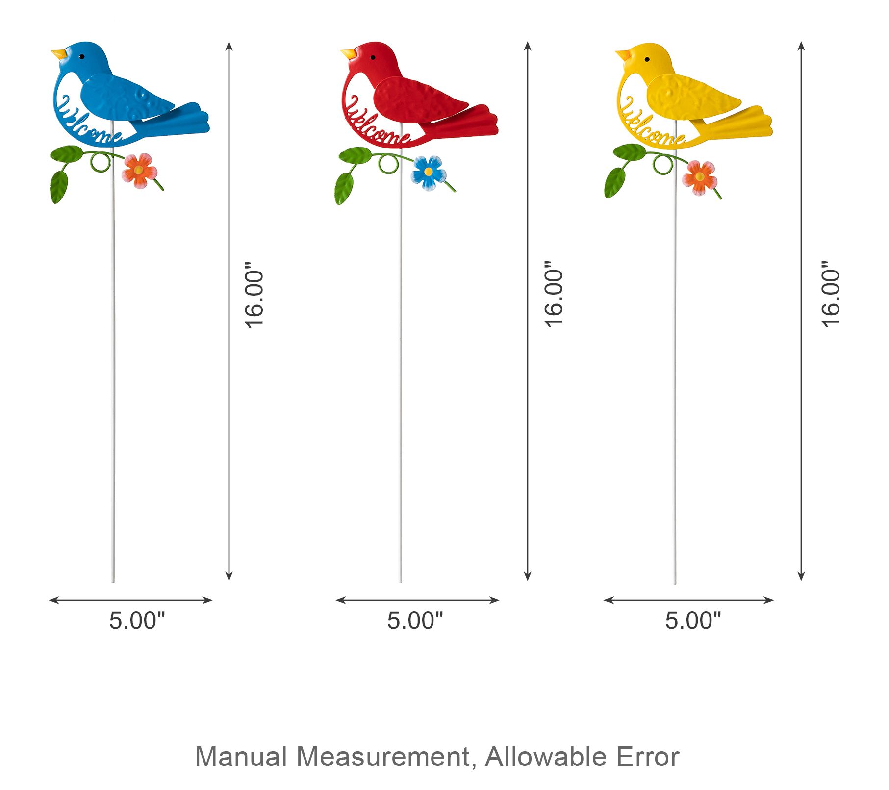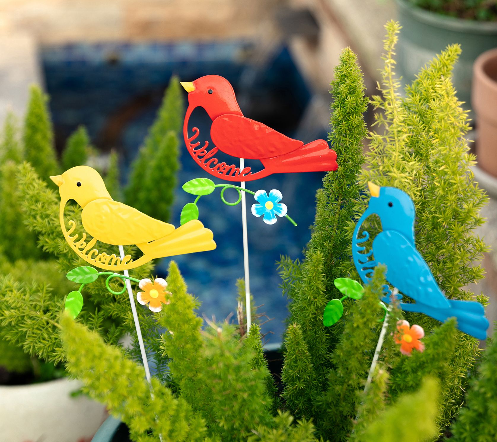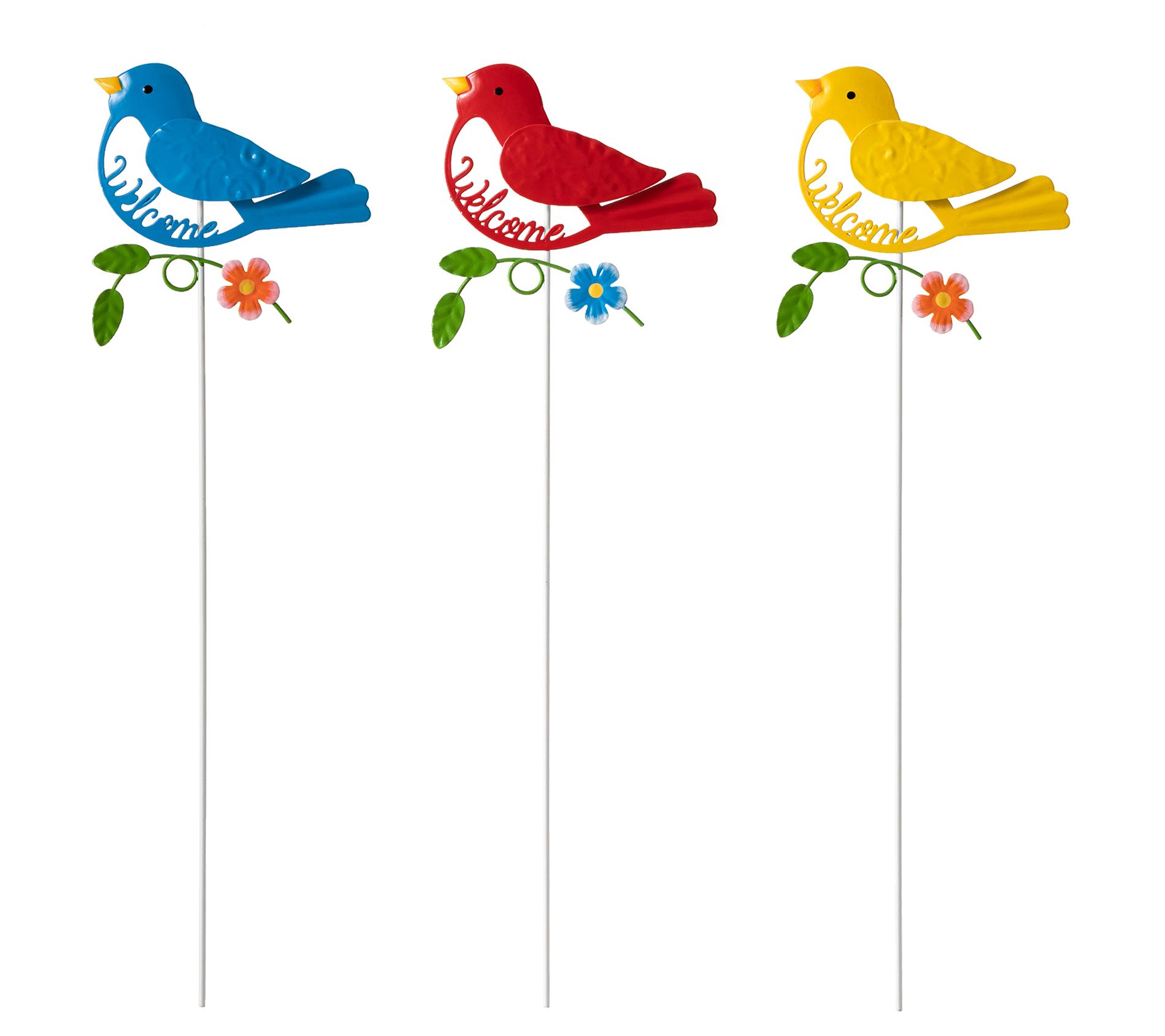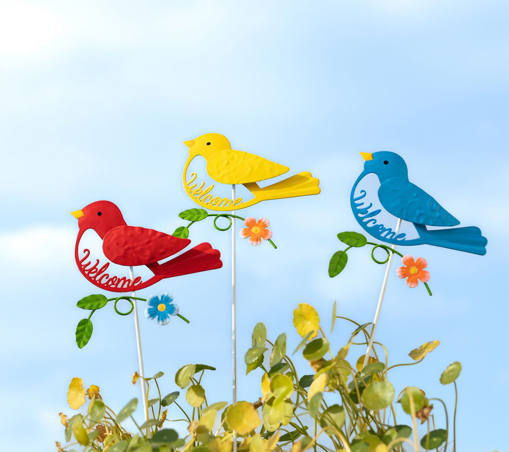 Freshen up your space when you add this trio of colorful bird stakes to a yard, garden, porch planter, or floral arrangement. From Glitzhome.