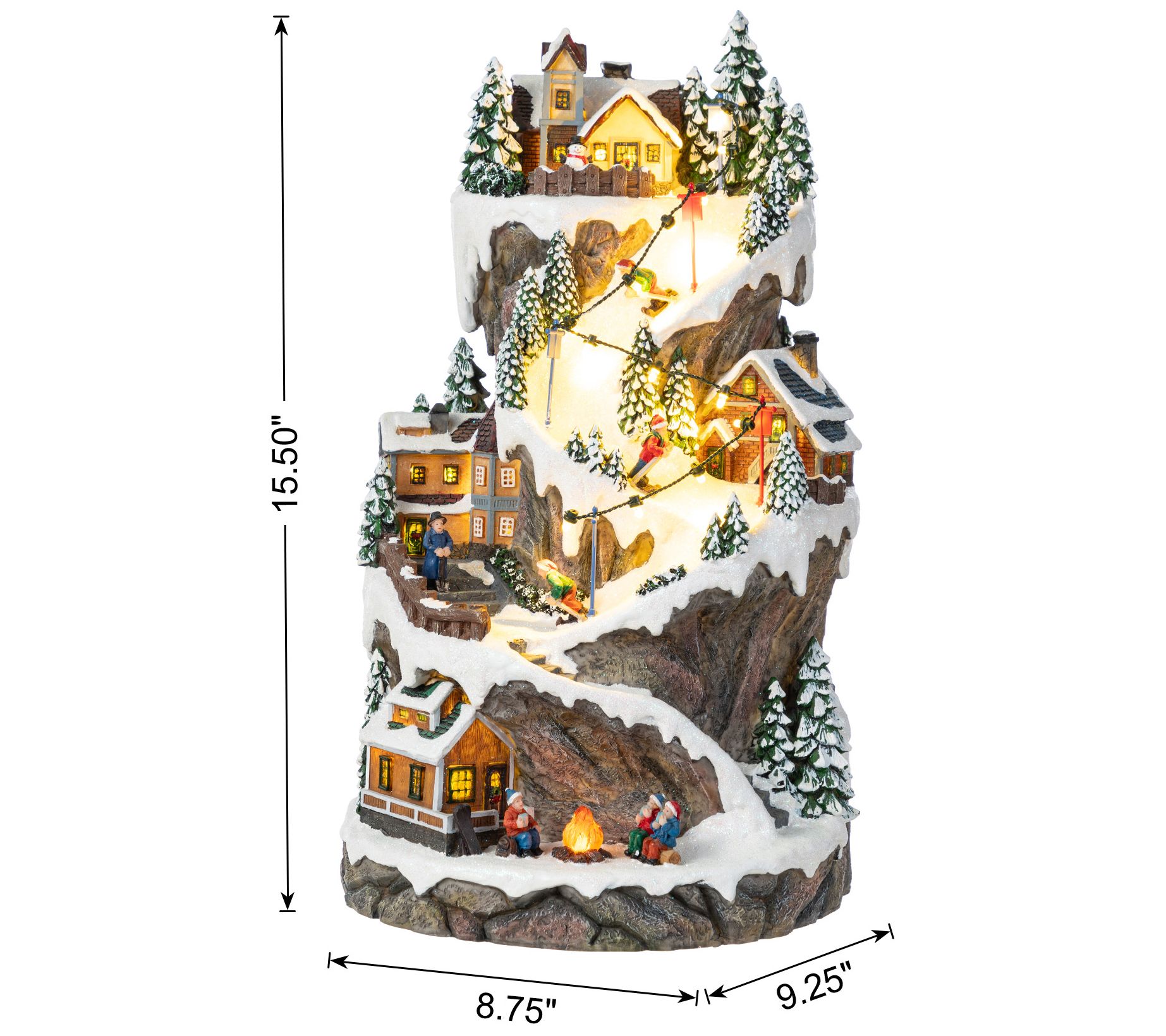 Glitzhome 16"H Lighted Christmas Music Skiing Moutain Village