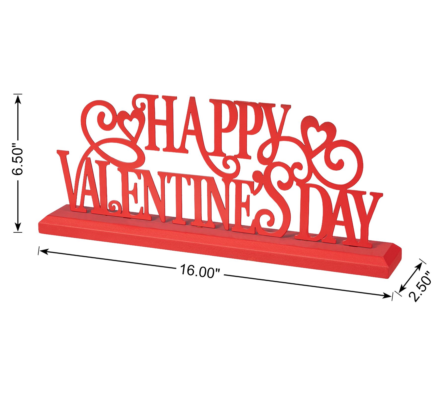 Add a touch of love and warmth to your space with this Happy Valentine's Day table topper. Perfect for celebrating the season of romance, it fits beautifully on any table or narrow shelf. Its detailed design is sure to charm guests and add a festive feel to your home. From Glitzhome.