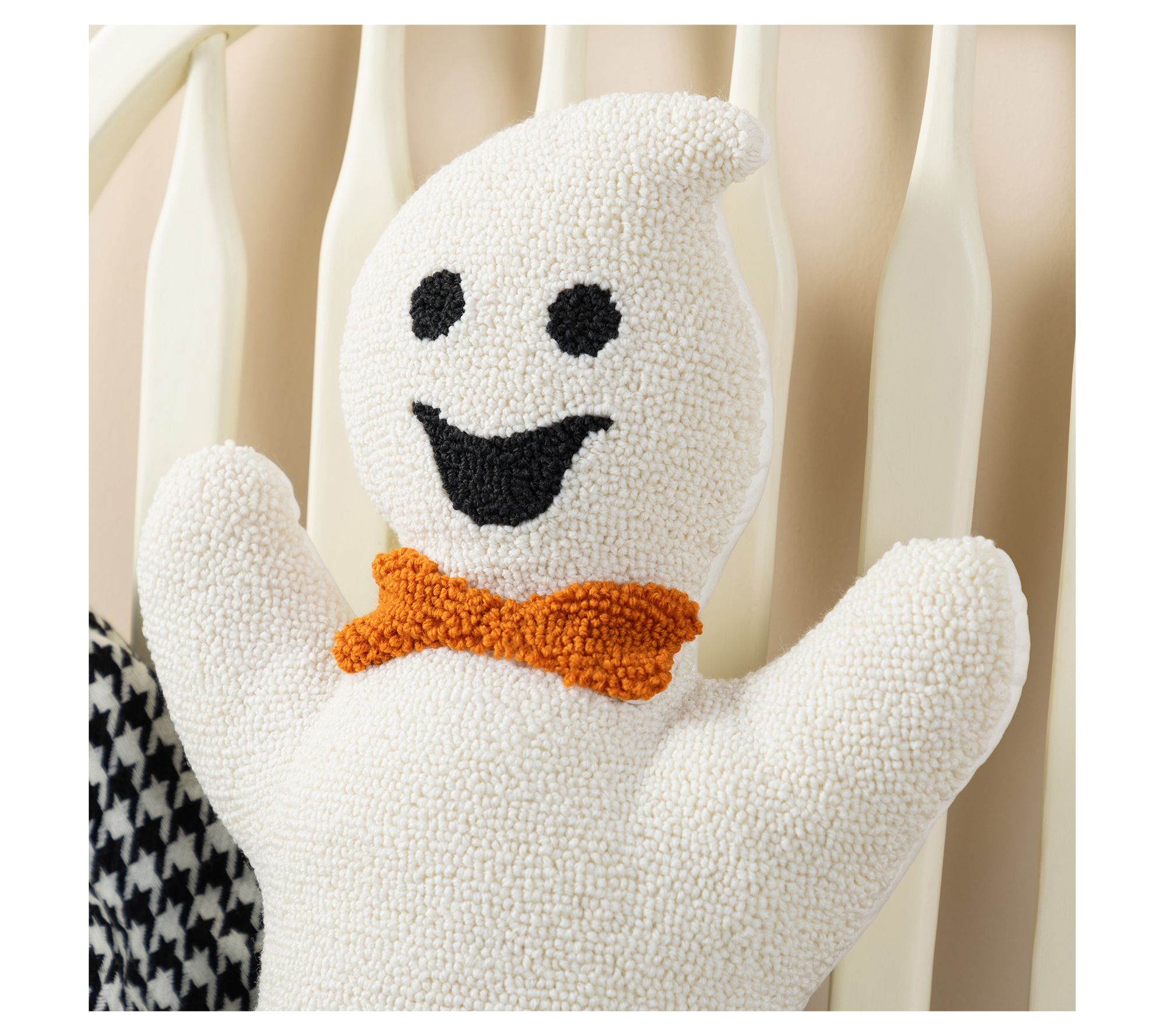 A cheerful ghost sporting a bright orange bow tie brings smiles and a little mischief to your favorite couch or reading nook. Cozy up with this plush accent while you swap stories or watch your favorite Halloween classics. Its fun hooked texture creates a playful touch that instantly sets a festive mood for family and friends. From Glitzhome.