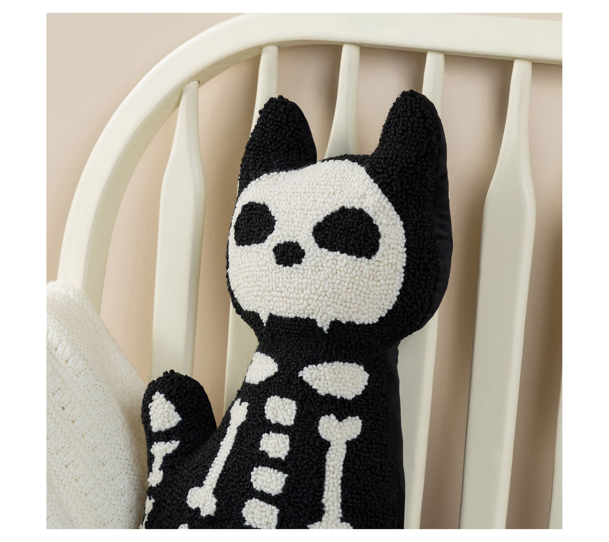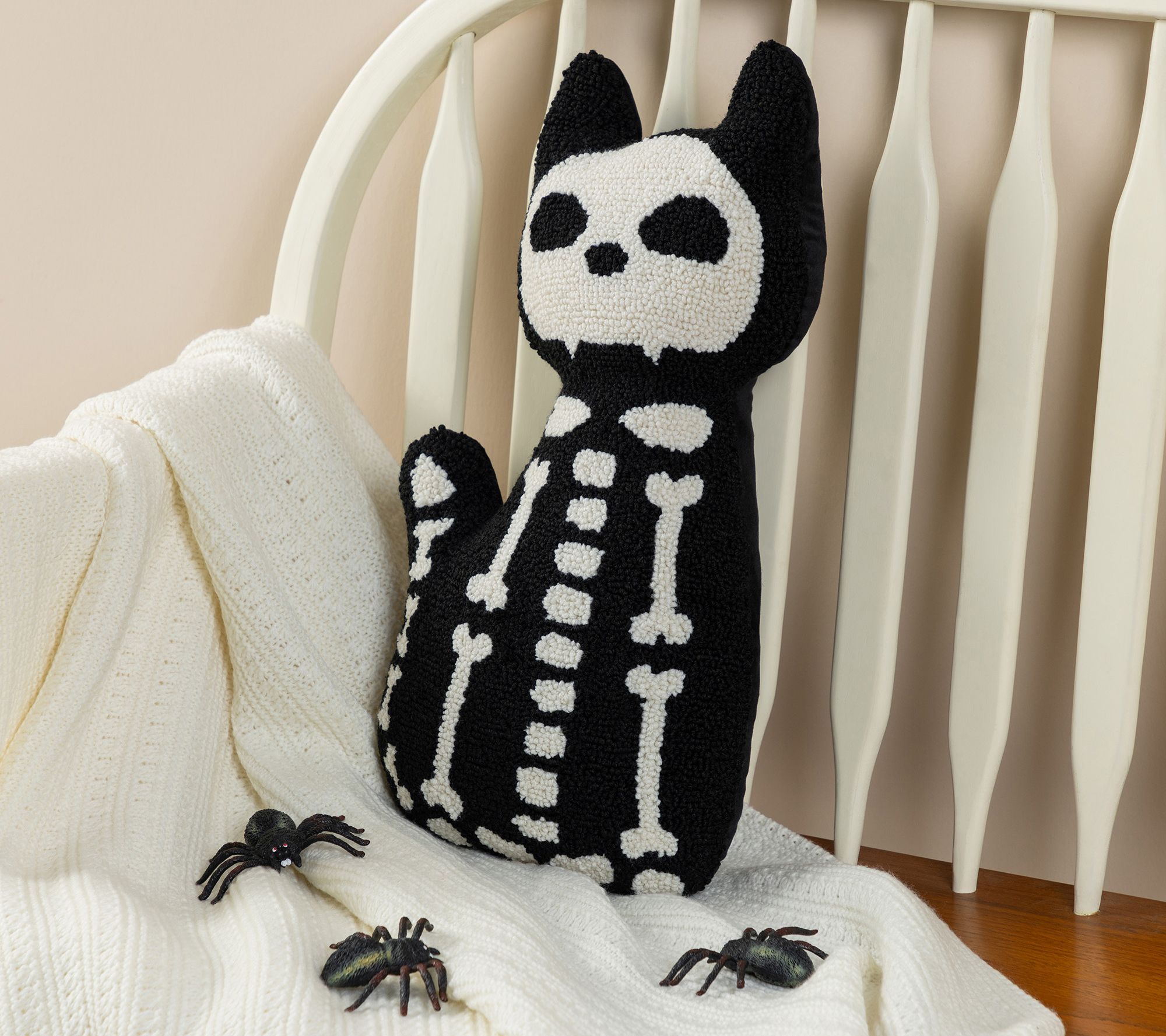 A playful skeleton cat design instantly livens up your space, bringing a quirky vibe to your sofa, accent chair, or entry bench. The hooked surface creates bold texture, while the cat silhouette introduces a lighthearted spin on seasonal style. Layer it with your other Halloween favorites or let it shine as a fun, standalone accent. From Glitzhome.