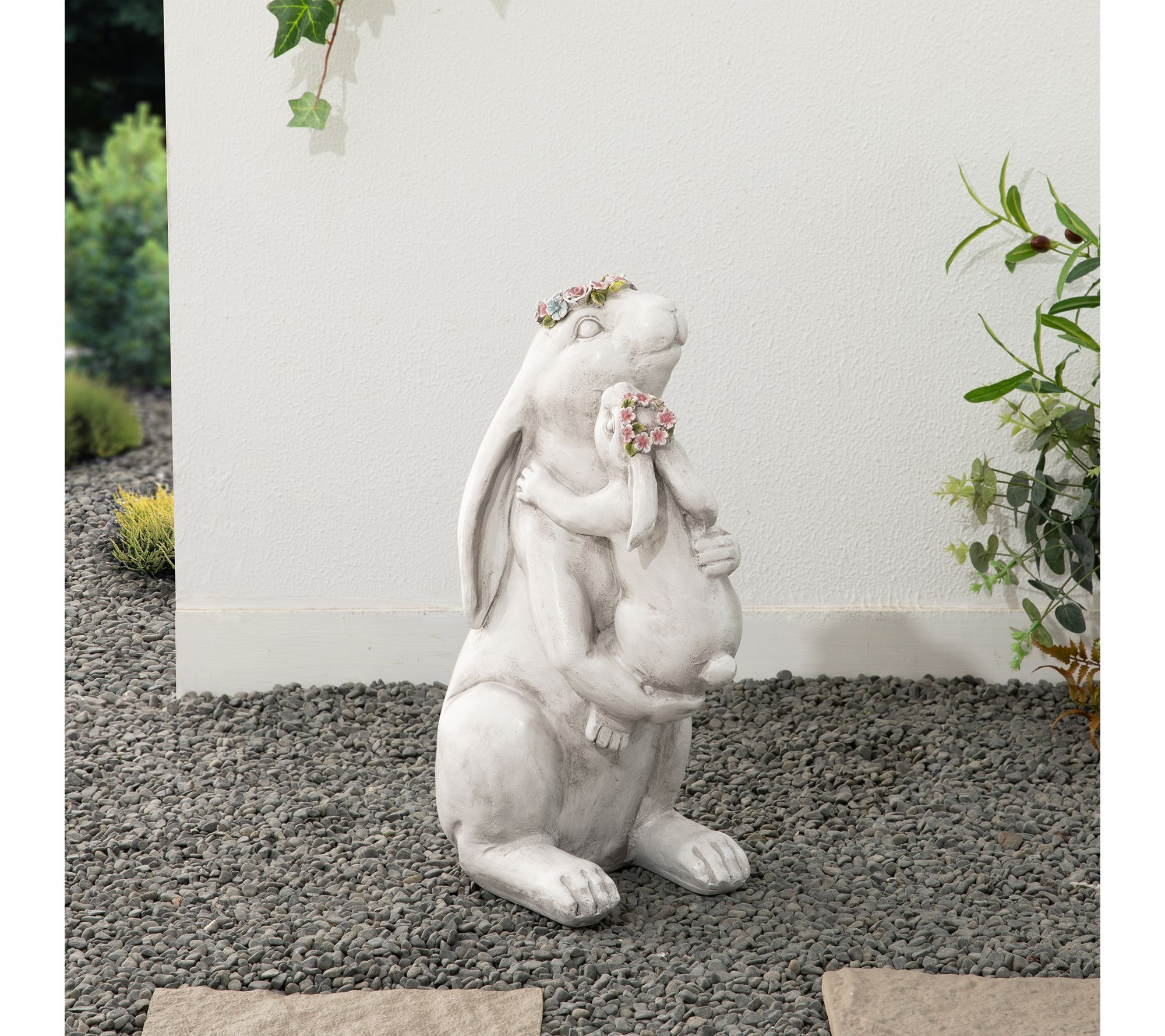 Glitzhome 17''H MGO Hugging Mom and Baby RabbitStatue
